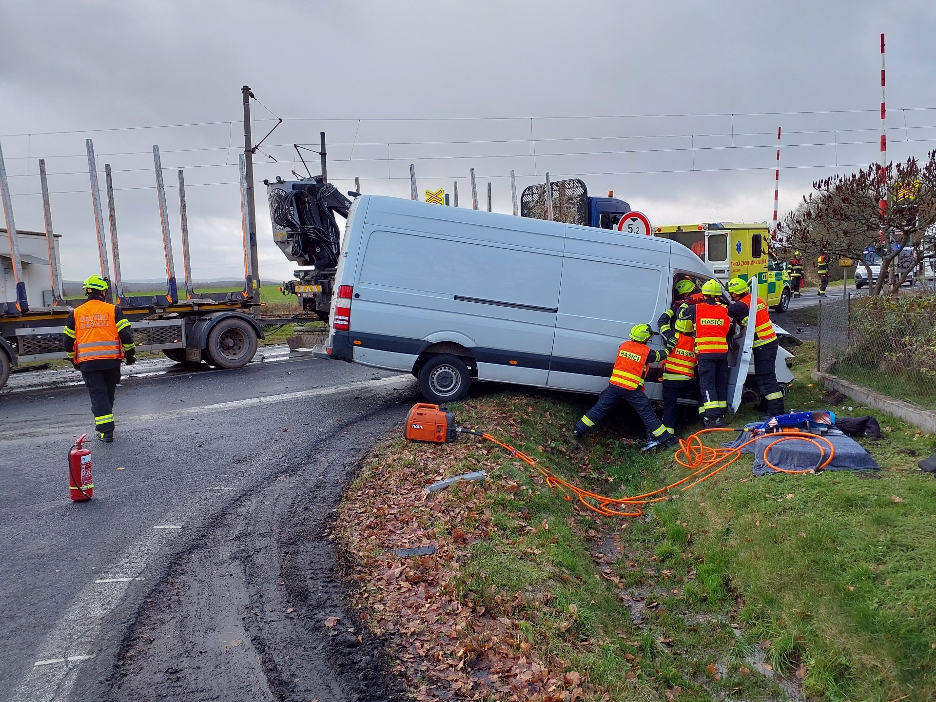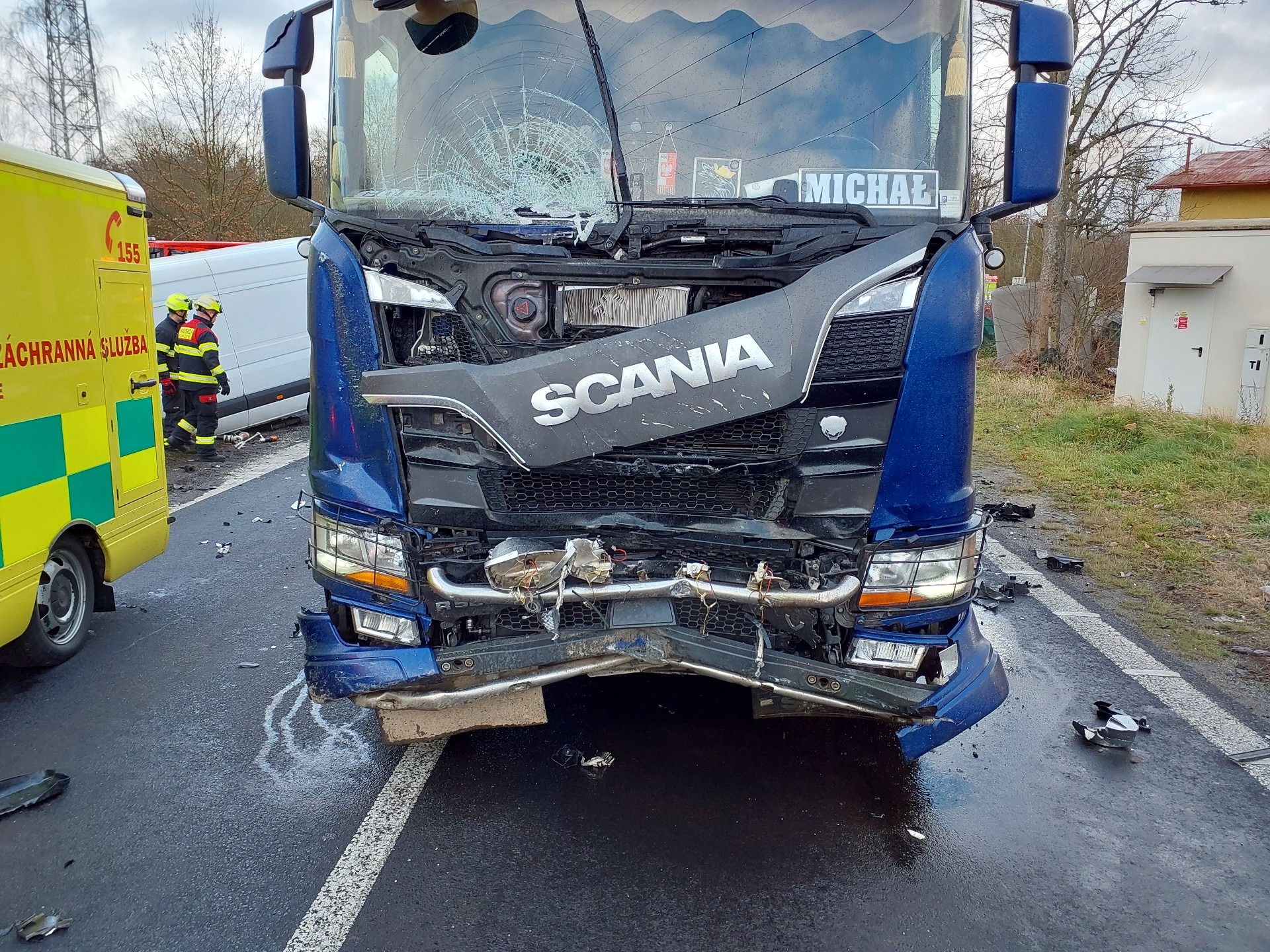 Čtvrteční nehoda u Františkových Lázní zaměstnala tři jednotky hasičů. Po střetu dodávky s kamionem museli záchranáři vyprostit zaklíněného řidiče a na místě zasahoval i vrtulník.