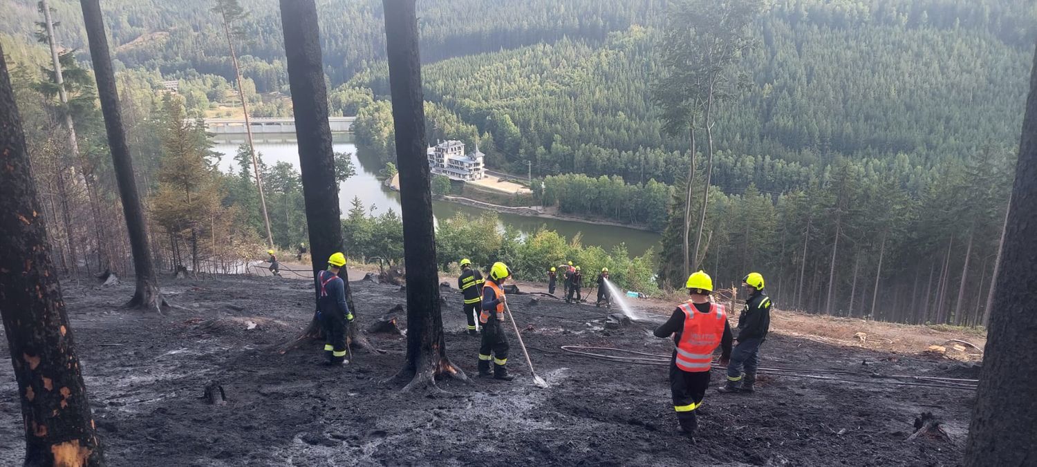 Požár lesního porostu na ploše zhruba 3 krát 3 metry nahlásil oznamovatel na tísňovou linku hasičů ve středu před druhou hodinou odpoledne. Hořet začalo ve svahu nad přehradou Březová podél Jungmannovy pěšiny. O pět minut později přišlo přes tísňové volání upřesnění rozsahu požáru, který již zasáhl plochu 20 krát 20 metrů a stále se šíří. V suchém porostu rozfoukával vítr oheň i na kmeny stromy a do korun náletových dřevin. Při příjezdu hasičů na místo byl požár již na ploše zhruba 100 krát 100 metrů a stále se šířil. Postupně tak hasiči povolávali na místo další posilové jednotky a byl vyhlášen II. stupeň požárního poplachu. Po dvou hodinách zásahu zastavili hasiči šíření plamenů, i nadále bylo nutné důkladně prolít celou plochu požářiště vodou. Právě hasební vody byl v místě nedostatek, nejbližší čerpací místo bylo v Březové, na místo navíc vedly jen úzké lesní cesty bez možnosti otáčení zásahové techniky. Ve večerních hodinách bylo celé místo požáru zcela uhašené, o půlnoci a v šest hodin ráno pak hasiči provedli kontrolu, zda nedochází k dalšímu rozhořívání. Několik malých ohnisek našli hasiči při ranní kontrole, po jejich uhašení se na místo na další kontrolu vrátí ve čtvrtek v odpoledních hodinách. Příčina a výše škody je v šetření.