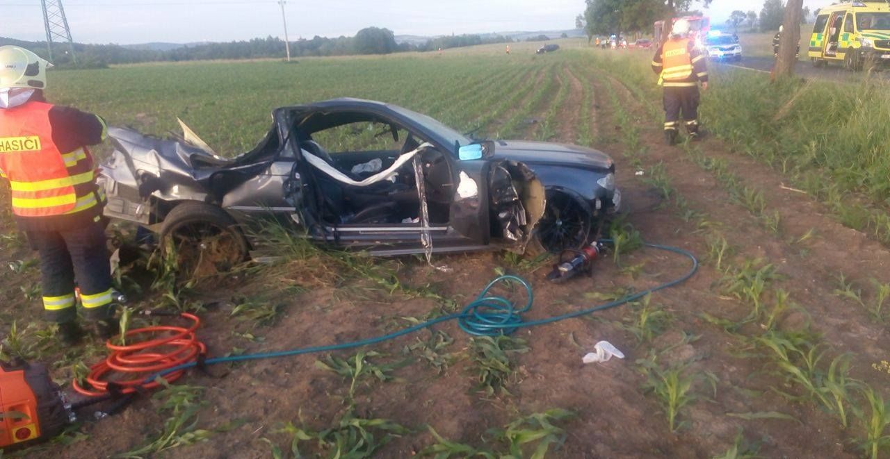 Obě auta skončila po srážce mimo komunikaci, hasiči museli vyprošťovat.