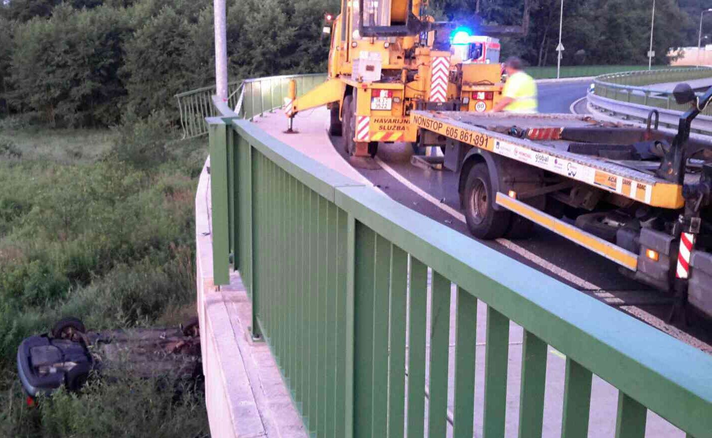 Hasiči zajistili místo nehody, kontrolovali únik provozních kapalin a asistovali odtahové službě při vytažení spadlého vozidla nahoru na most. Během záchranných prací byl provoz na silnici na několik desítek minut zcela uzavřený.