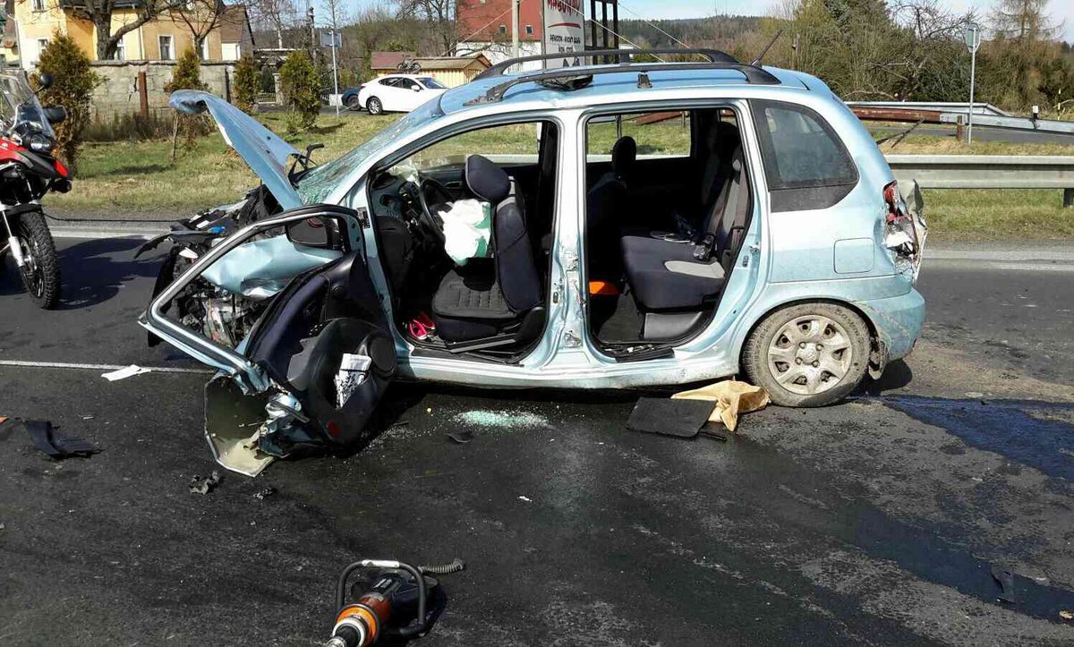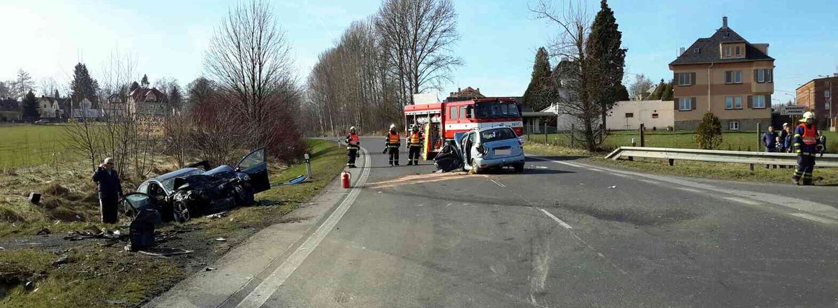 V Aši museli hasiči vyprošťovat osádku auta, na místě byl i záchranářský vrtulník.