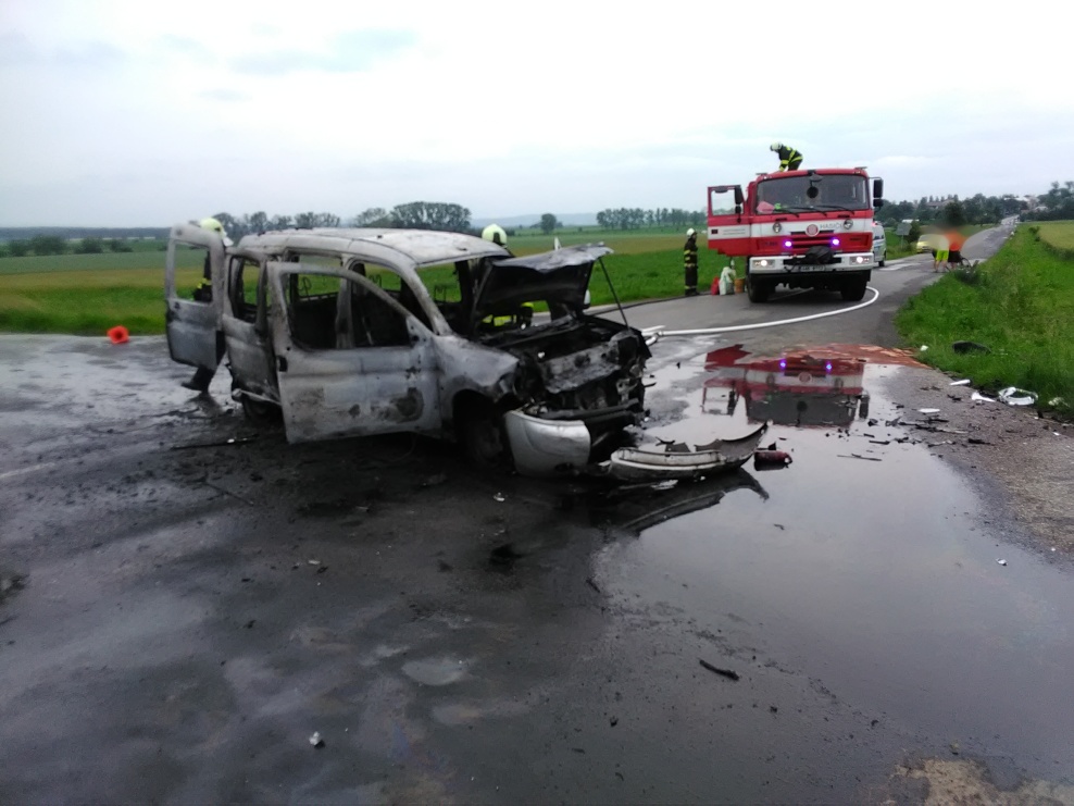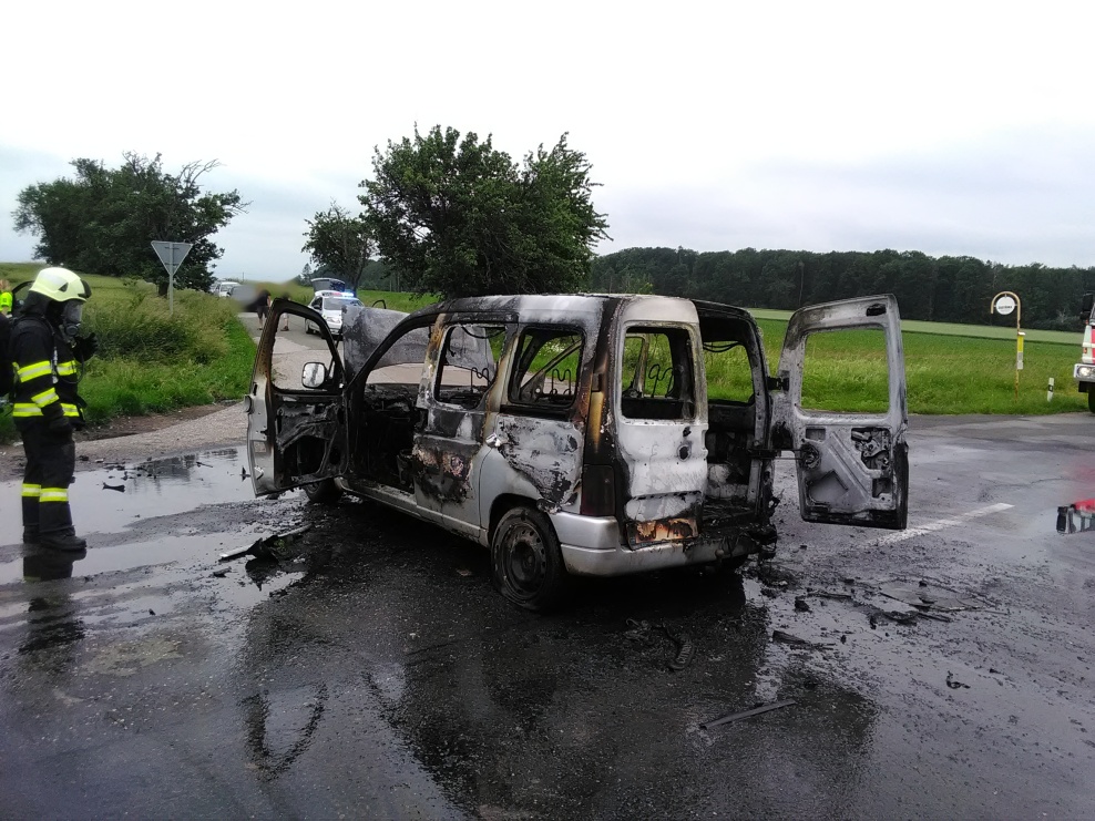 V katastru obce Stračov zasahovali profesionální hasiči z Hořic a JSDH Nechanice u dopravní nehody dvou osobních vozidel, z nichž jedno začalo hořet. Jedno auto skončilo po nárazu v poli, druhé, které zůstalo na komunikaci, bylo zasaženo požárem. Při příjezdu hasičů byli všichni účastníci nehody mimo své vozy, jedna osoba byla předána do péče ZZS. Jednotky požár rychle zlikvidovaly, postaraly se o odstranění uniklých provozních kapalin i úklid vozovky.