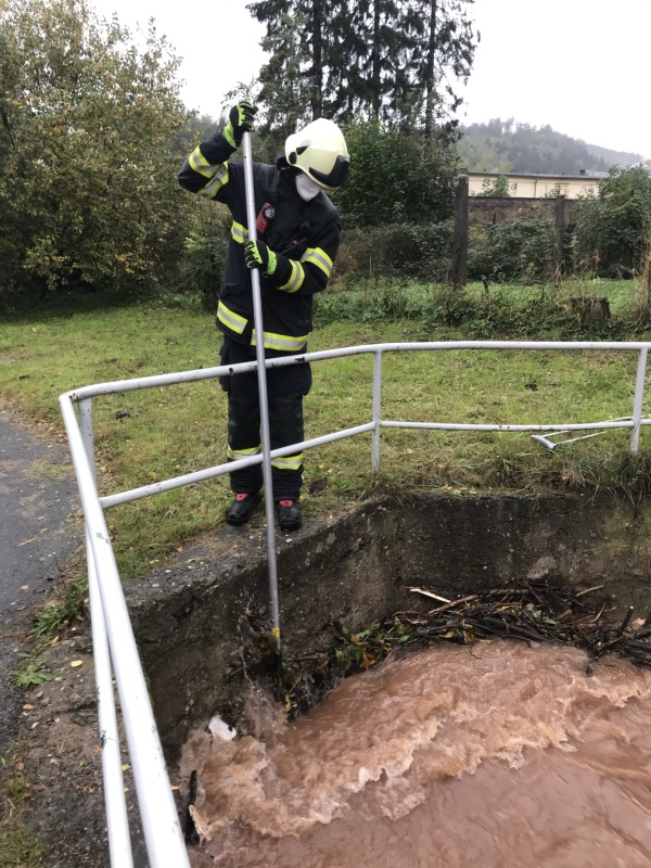 Dobrovolná jednotka z Obědovic pomohla s vyčištěním odvodňovacího kanálu, kvůli jeho zanesení hrozilo natečení vody do obytných prostor domu.