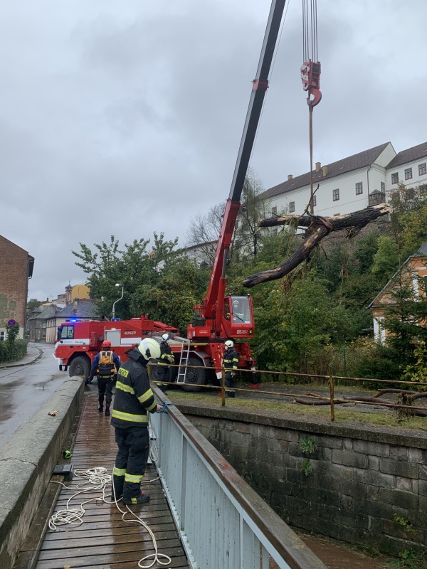 Profesionální a dobrovolné jednotky odstraňovaly na Náchodsku spadané stromy z komunikací, zasahovaly takto v katastrech měst a obcí Suchý Důl, Hořičky, Broumov (Benešov) a Česká Metuje.