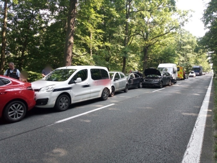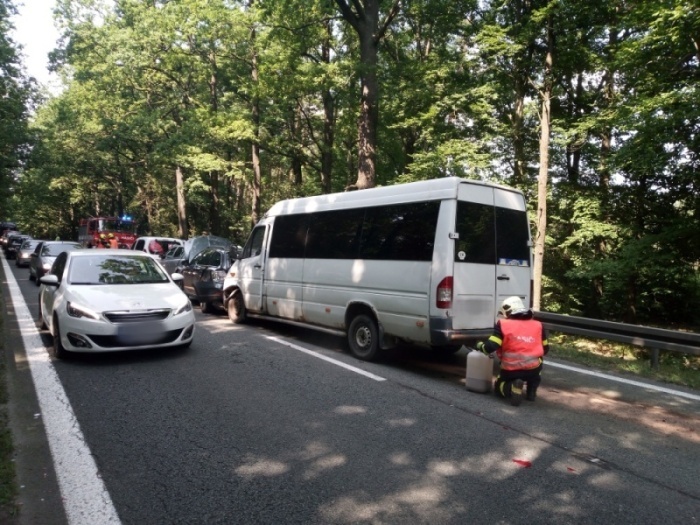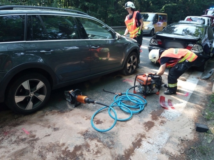 Na silnici č. 35 mezi Býští a Hradcem Králové zasahovali profesionální hasiči z centrální stanice Hradec Králové a ze stanice Holice u dopravní nehody, při které se střetlo pět osobních vozidel a jedna dodávka. Zdravotnická záchranná služba si převzala do péče tři osoby. Hasiči zajistili místo události i havarované dopravní prostředky. Ty pak od sebe museli odtrhnout, k manipulaci využili i hydraulické vyprošťovací zařízení. Po úklidu vozovky od uniklých provozních náplní předaly jednotky místo zásahu policistům.