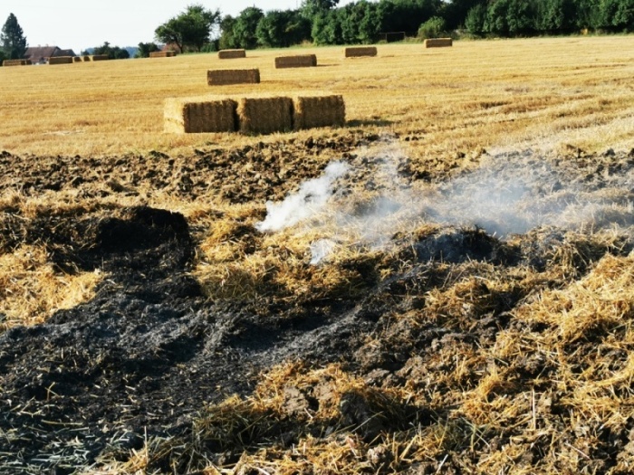 Požár balíků slámy na poli likvidovali hasiči ze tří jednotek požární ochrany. Požár se naštěstí nikam po poli nešířil, hasiči rozhrnuli slámu, aby mohli dohasit případná skrytá ohniska. Událost se obešla beze škody. Na místě zasahovali profesionální hasiči z Hořic, JSDH Lázně Bělohrad a Mlázovice.