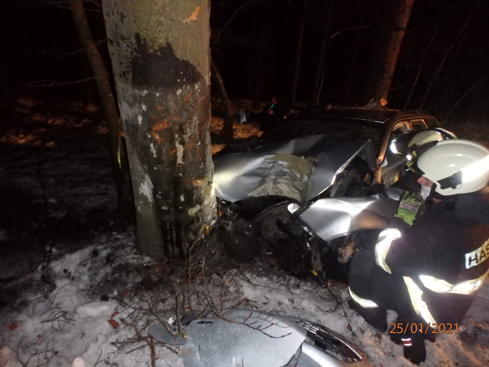Na silnici č. 300 v katastru části obce Horní Dehtov havaroval osobní automobil, který vyjel mimo komunikaci a narazil do stromu. Na místo události spěchala profesionální jednotka ze stanice Dvůr Králové nad Labem, ve voze měl zůstat zaklíněný řidič. Hasiči museli vyprostit zraněného z havarovaného auta pomocí hydraulického zařízení. Pro pacienta přiletěl vrtulník letecké záchranné služby. Jednotka dále zajistila automobil proti vzniku požáru a předala místo zásahu policistům.
