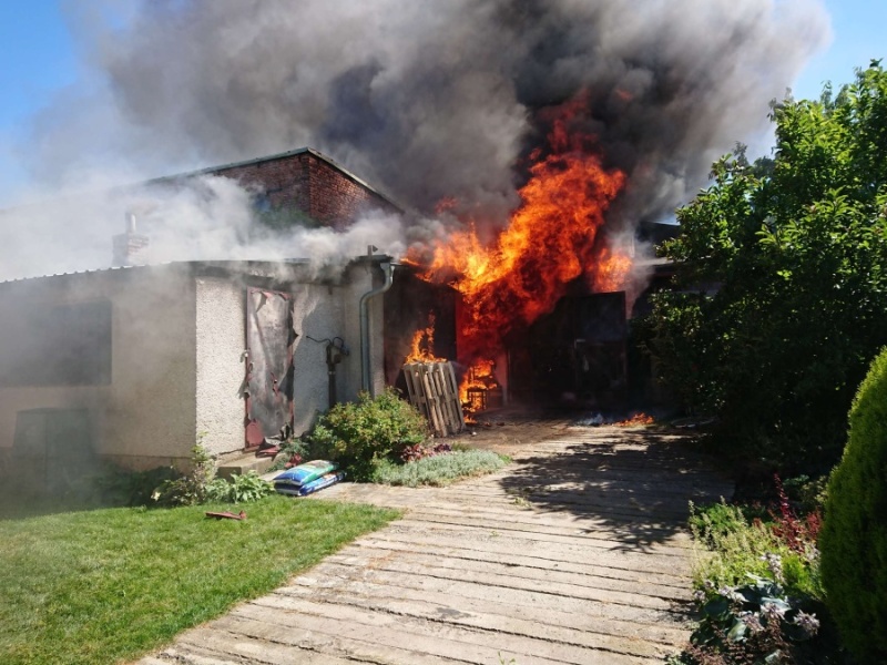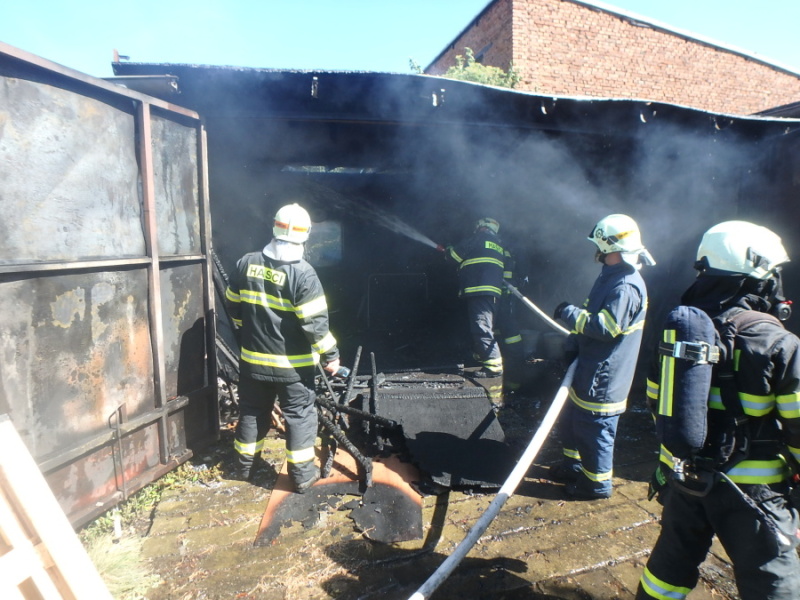 V Nádražní ulici v Chlumci nad Cidlinou likvidovalo pět jednotek hasičů požár garáže a kůlny, uvnitř objektu byly také tlakové lahve. Na likvidaci požáru byly nasazeny tři vodní proudy. Těsně před 16. hodinou dostali hasiči požár pod kontrolu, poté dohašovali už jen jednotlivá ohniska. Škoda, kterou plameny způsobily, byla předběžně vyčíslena na 100 tisíc korun. Hodnoty představující asi půl milionu korun se podařilo hasičům uchránit. Příčina vzniku události je předmětem vyšetřování, na místo si vyšetřovatel hasičů povolal také specialisty z Institutu ochrany obyvatelstva z Lázní Bohdanče. Na místě zasahovali profesionální hasiči ze stanice Nový Bydžov a Hradec Králové – Pražská a JSDH Lovčice, Chlumec nad Cidlinou, Nové Město nad Cidlinou.