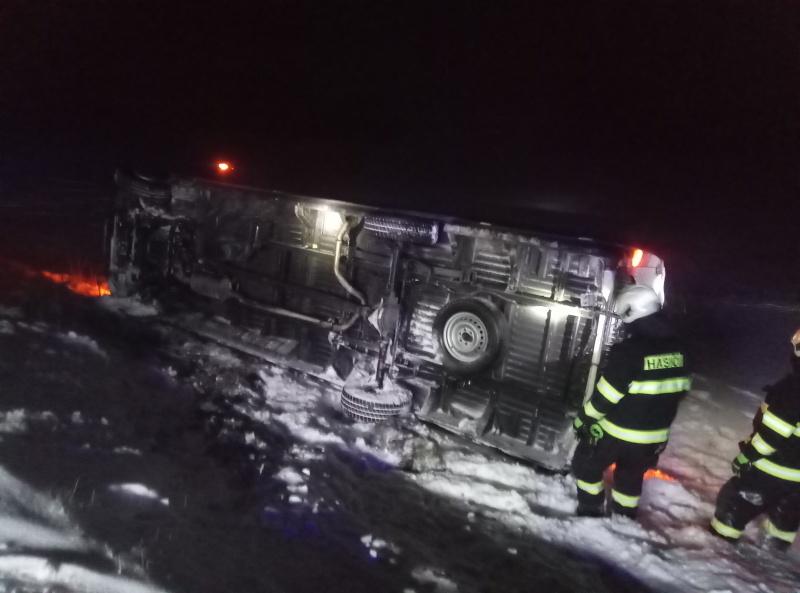 U dopravní nehody dodávky v Bernarticích zasahovali profesionální hasiči z Trutnova. Automobil sjel mim komunikaci do příkopu, kde zůstal převrácený na boku. Při nehodě nebyl nikdo zraněn, jednotka zkontrolovala vůz na případný únik provozních kapalin. Řidič si zařídil vyproštění přes asistenční službu.