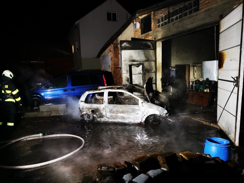 Profesionální a dobrovolní hasiči z Hořic zasahovali v Husově ulici u ohlášeného požáru osobního automobilu. Při svém příjezdu našli hasiči zasažené vozidlo před dveřmi dílny, kam bylo vytlačeno, došlo k částečnému rozšíření i na samotnou dílnu. Likvidaci události ohlásil velitel zásahu před 20:30 hod. Příčinou vzniku požáru bylo nedbalostní jednání. Škoda byla vyčíslena na 70 tisíc korun, uchráněné hodnoty představují asi 300 tisíc korun.