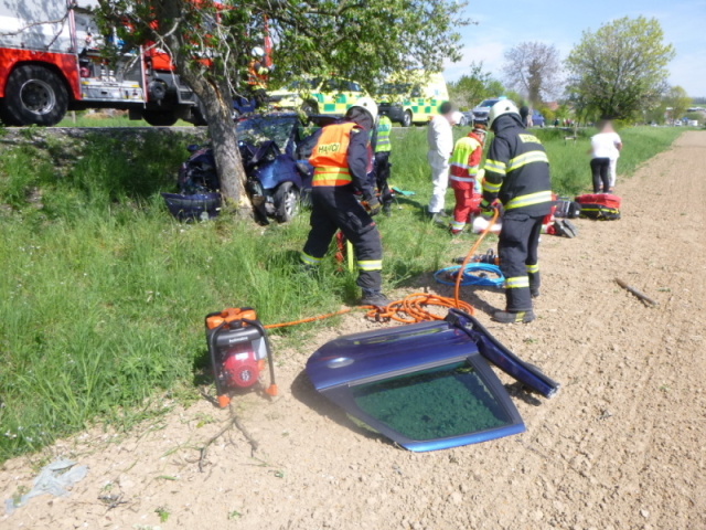 Na silnici č. 14 zasahovala profesionální jednotka z Dobrušky u dopravní nehody osobního vozidla, které narazilo do stromu. Jednoho zraněného člověka museli hasiči z havarovaného vozu vyprostit pomocí hydraulického vyprošťovacího zařízení. Na místě spolupracovali hasiči s policií a záchranáři, pro zraněného člověka přiletěl vrtulník LZS. Jednotka pomohla s transportem pacienta, zajistila místo události a zabezpečila automobil proti vzniku požáru. Dále museli hasiči pokácet poškozený strom, do kterého auto narazilo. Po došetření pomohla jednotka s naložením vozidla na odtah a zlikvidovala uniklí provozní kapaliny.
