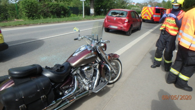 K dopravní nehodě motocyklu vyjeli profesionální hasiči z Vrchlabí a JSDH Hostinné. Hasiči místo nehody zabezpečili, zraněnou osobu si převzala do péče ZZS.