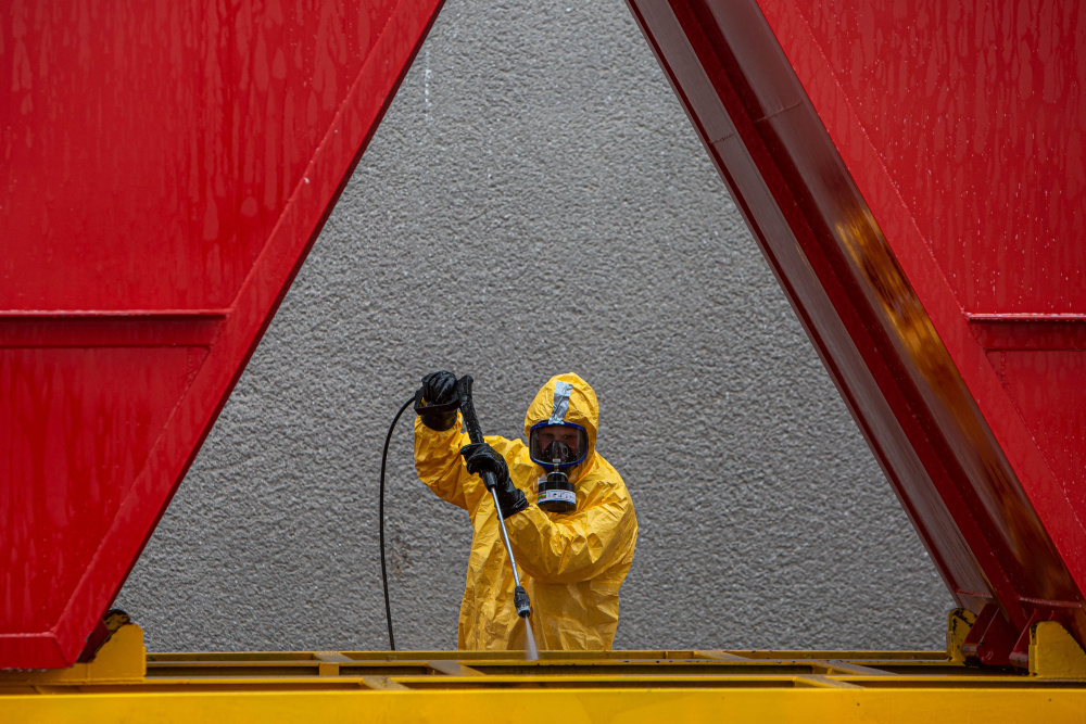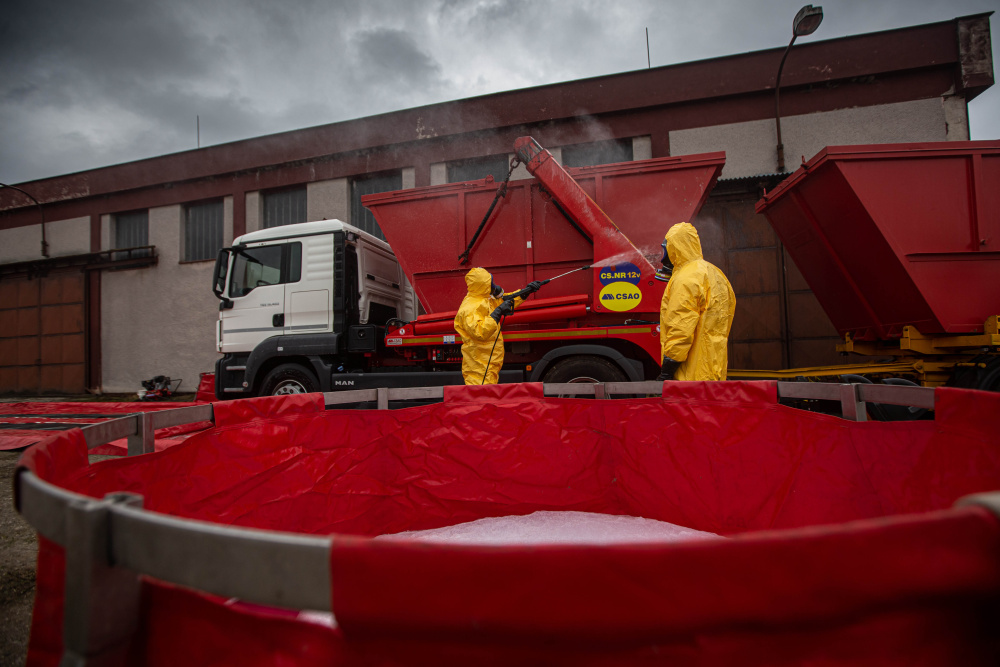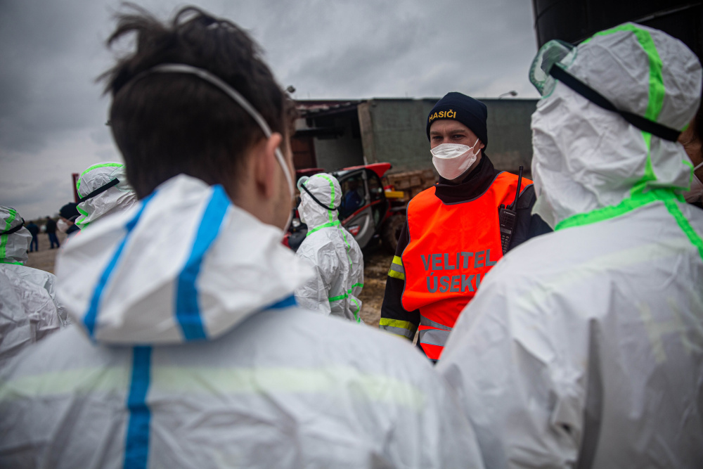 „Celý zásah byl organizačně, technicky a pro zasahující hasiče i fyzicky náročný. Příslušníci byli při vynášení ptactva z hal vždy rozděleni do několika skupin a pravidelně se střídali. Po celou dobu pracovali v jednorázových ochranných oděvech, respirátorech a dalších osobních ochranných prostředcích, protože jsme se pohybovali v prostoru s výskytem nebezpečné nákazy. Po každém vystřídání museli projít procesem dekontaminace, stejně tak musela být dekontaminována i využitá technika, vozidla a kontejnery s utracenou drůbeží. Naše jednotky také zajišťovaly postupně desinfekci všech osmnácti hal, kde bylo ptactvo chováno,“ popsal náčelník štábu kpt. Jan Čech, který měl na starosti organizaci činností složek IZS na místě zásahu.