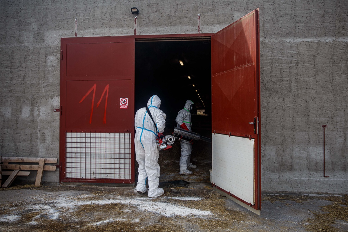 1. 22. 3. 2021 V dobřenickém chovu nakaženém ptačí chřipkou bylo nasazeno první den 70 hasičů