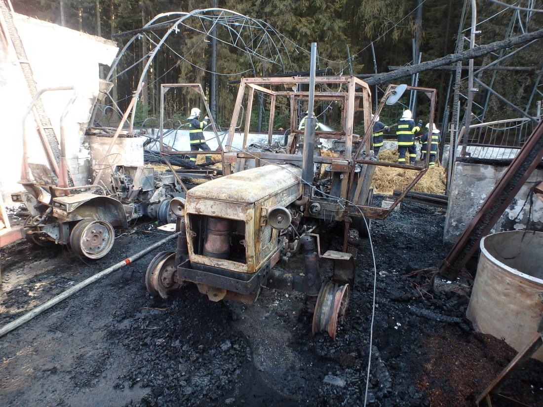 Šetřením na místě události bylo zjištěno, že příčinou požáru byla technická závada na malotraktoru VINEA 30 HP, který byl po příjezdu odstaven v přípravně stáje pro koně. Plameny zničily kompletně celou stáj s přípravnou, traktor zn. ZETOR, malotraktor zn. VINEA, elektrickou instalaci, vybavení stáje, pivovarský vůz a oheň také poškodil deratizační cisternu.