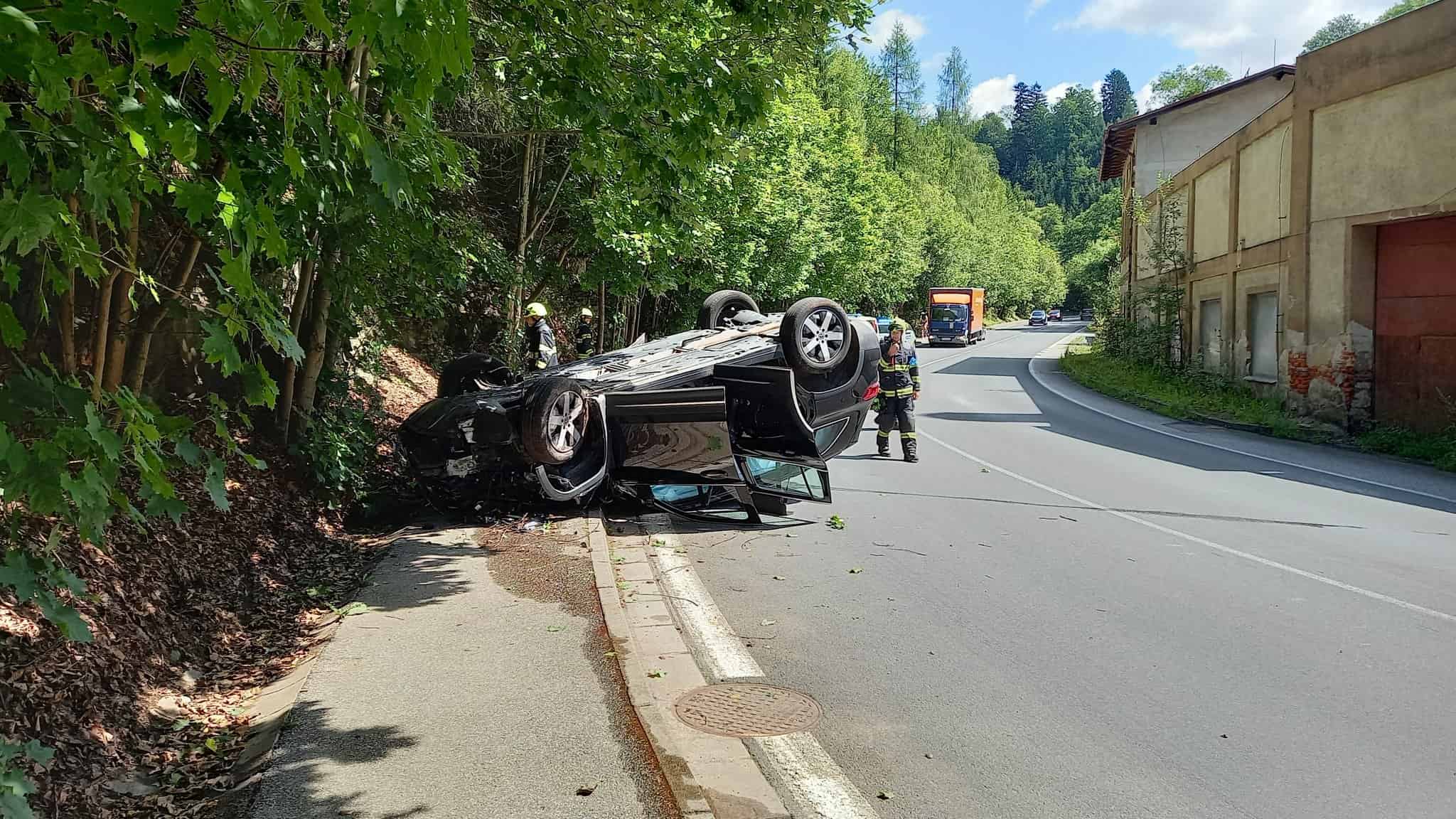 Auto skončilo na střeše. Pomoc přivolal systém eCall