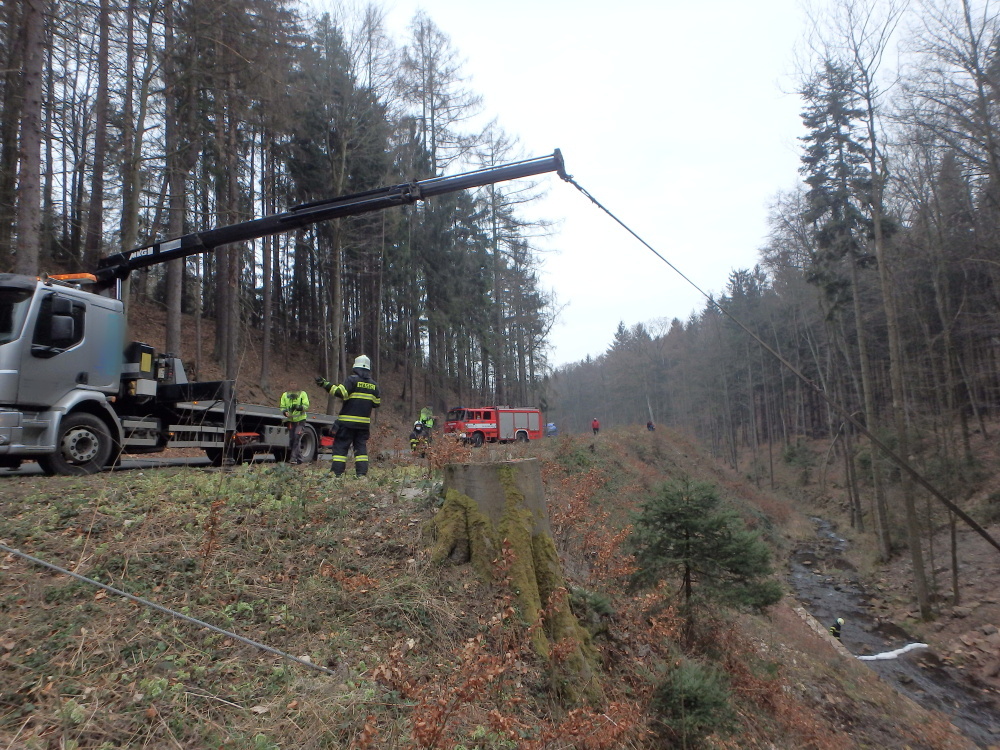 Po dobu policejního vyšetřování dopravní nehody nasvěcovali místo události. Kvůli náročnému okolnímu terénu bylo rozhodnuto o tom, že vozidlo bude vyproštěno za denního světla, na místo přijel také vyprošťovací automobil z centrální stanice Hradec Králové. Automobil se podařilo vytáhnout a naložit na odtah. Při vyprošťování došlo k malému úniku provozních náplní na vodní hladinu, byly zachyceny pomocí sorpčních hadů. Po dobu vyprošťování vozidla byla komunikace uzavřena. Zásah byl ukončen po 10. hodině a jednotky se vracely zpět na stanice.