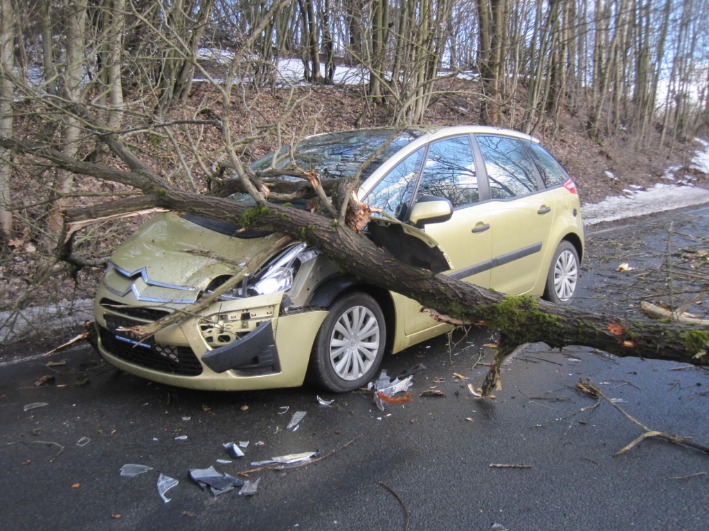 Na Trutnovsku hasiči odstraňovali stromy v Lipnici a trutnovské městské části Babí, kde poškodil osobní vůz. I tato událost se obešla bez zranění.