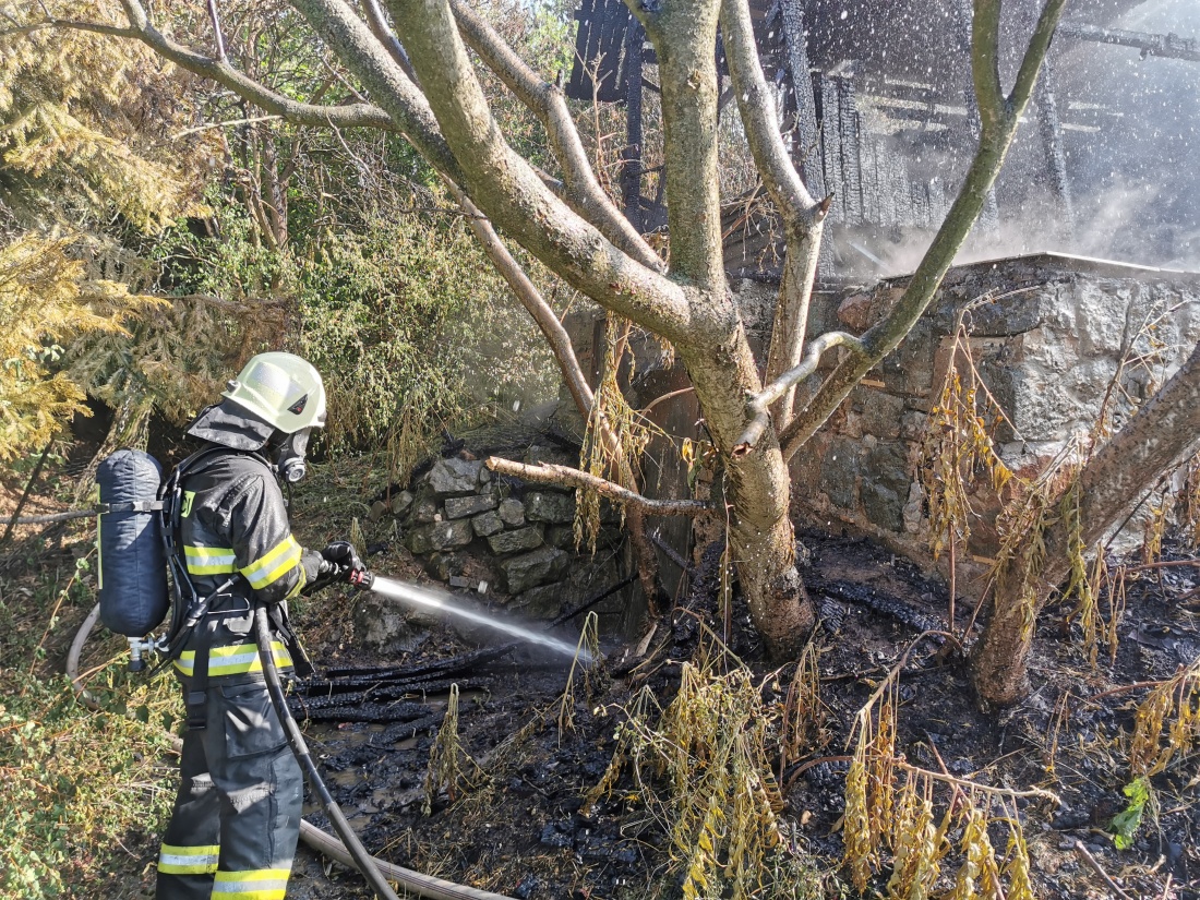 Požár chaty v zahrádkářské kolonii v lokalitě Hrachovec byl na krajské operační a informační středisko hasičů nahlášen ve středu ráno před 9. hodinou. Podle prvních informací z místa události se neměly v objektu nacházet žádné osoby a požár se začínal šířit na okolní porost.