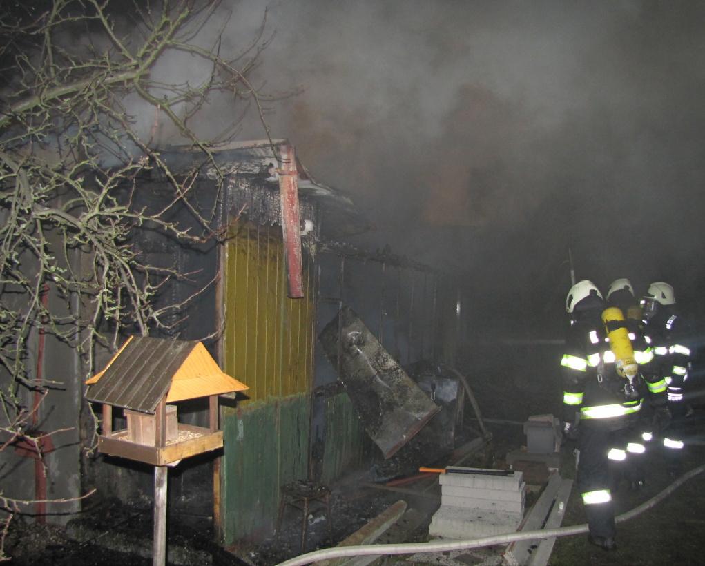 Po příjezdu hasičů na místo byla již celá chata v plamenech. Jednalo se o přízemní zahradní chatku o rozměrech asi 4x6 metrů. Hasiči byli od začátku události v kontaktu s majitelem objektu. Uvnitř se nikdo během požáru nenacházel, ale byly zde umístěny tlakové lahve. Jednotky použily k likvidaci požáru vysokotlaké hašení i hašení pomocí C proudu, tlakové lahve vynesly ven do bezpečí. Skrytá ohniska odhalovaly jednotky rozebráním podhledů v objektu.