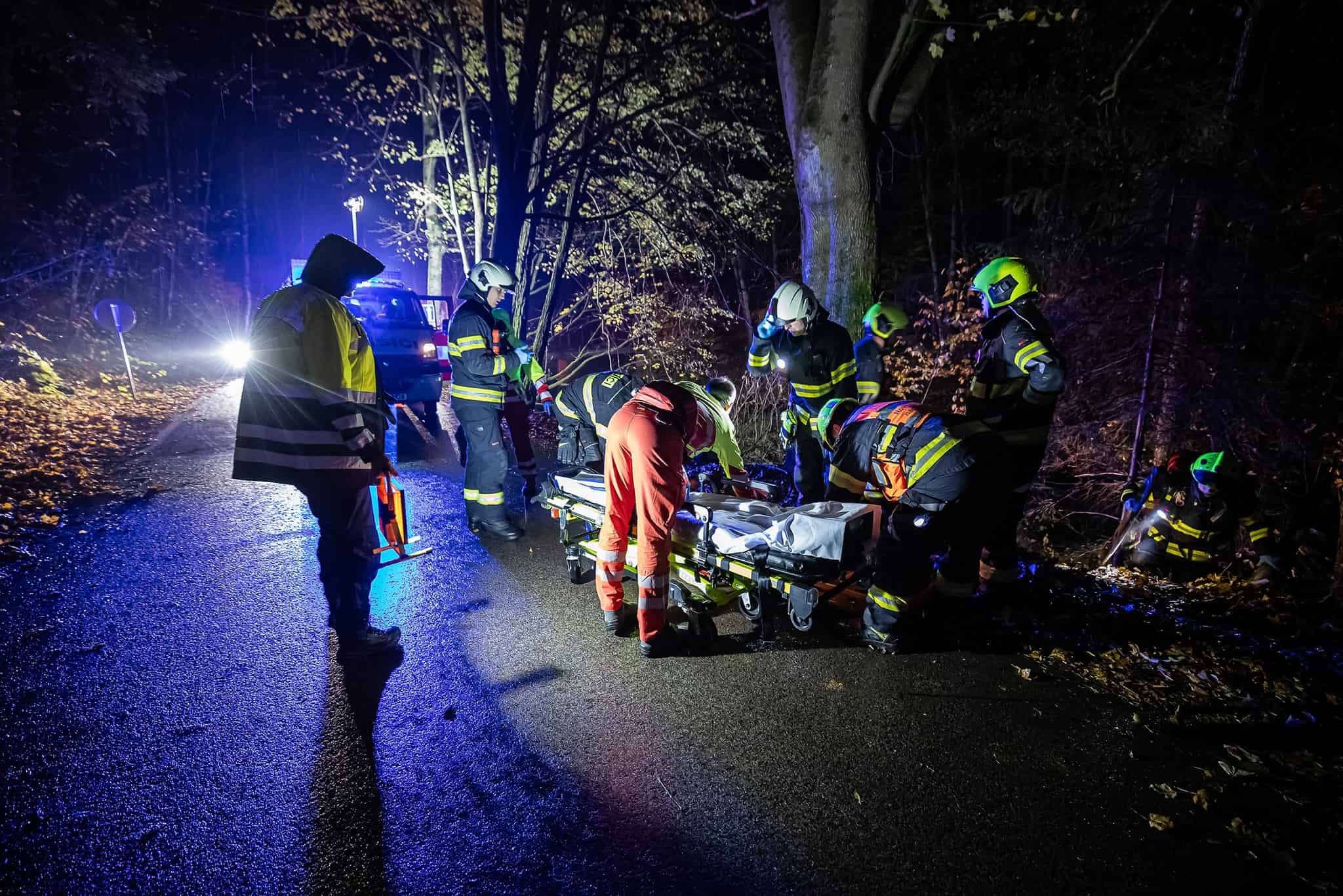 Noční pád v těžko přístupném terénu