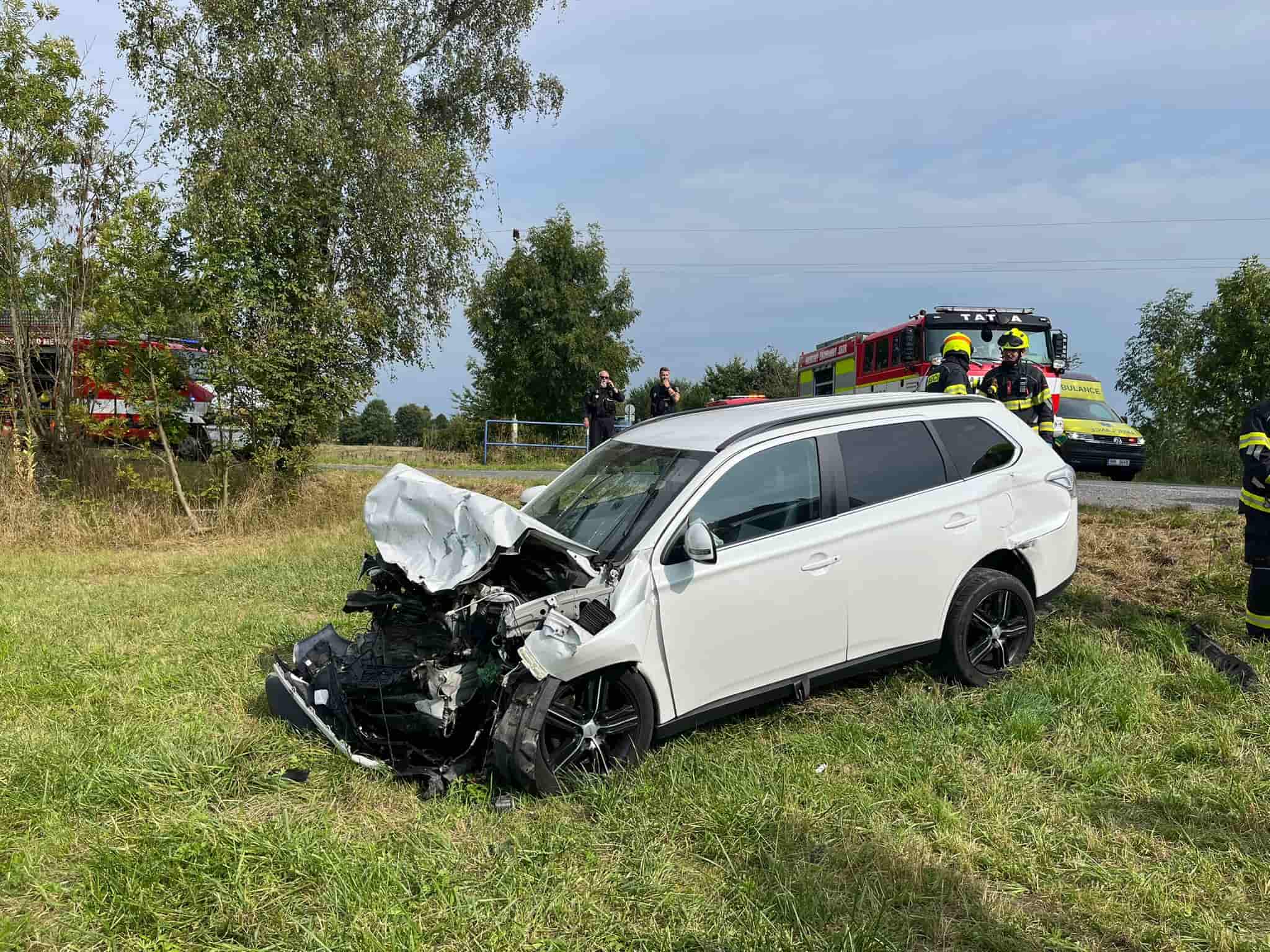 Střet vozidel skončil mimo silnici