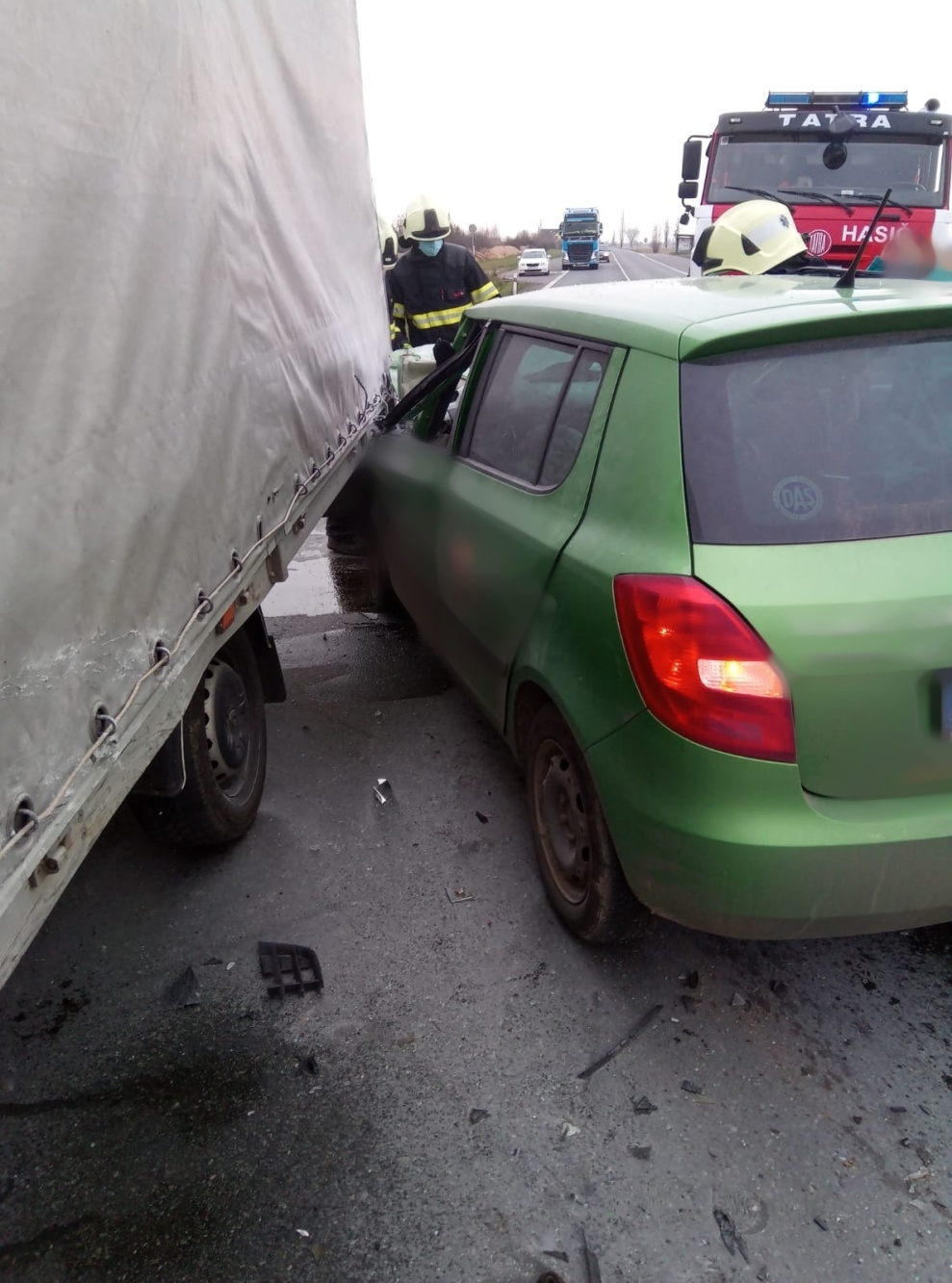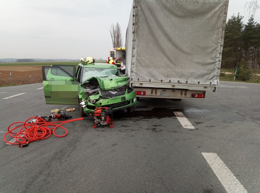 Uzavření komunikace č. 11 u Týniště nad Orlicí si vyžádala dopravní nehoda dodávky a cisterny. Na místě události zasahovaly všechny složky IZS včetně vrtulníku letecké záchranné služby. Při nehodě byli dva lidé zraněni, dodávka zůstala stát se zdemolovanou přední částí vozu v silnici, cisterna s tahačem byla převrácená na bok. Z převráceného auta došlo k částečnému úniku pohonných hmot, jednotkám se následně podařilo nádrž utěsnit. Mimo nádrž se dostalo asi 100 litrů nafty, o této skutečnosti byli vyrozuměni zástupci orgánů ochrany životního prostředí. Hasiči zajišťovali místo události, zabezpečili havarovaná vozidla a pomohli s odstraněním následků. Vyproštění cisterny musela zajistit specializovaná firma. Na místě zasahovali profesionální hasiči ze stanice Rychnov nad Kněžnou a Hradec Králové a JSDH Týniště nad Orlicí.