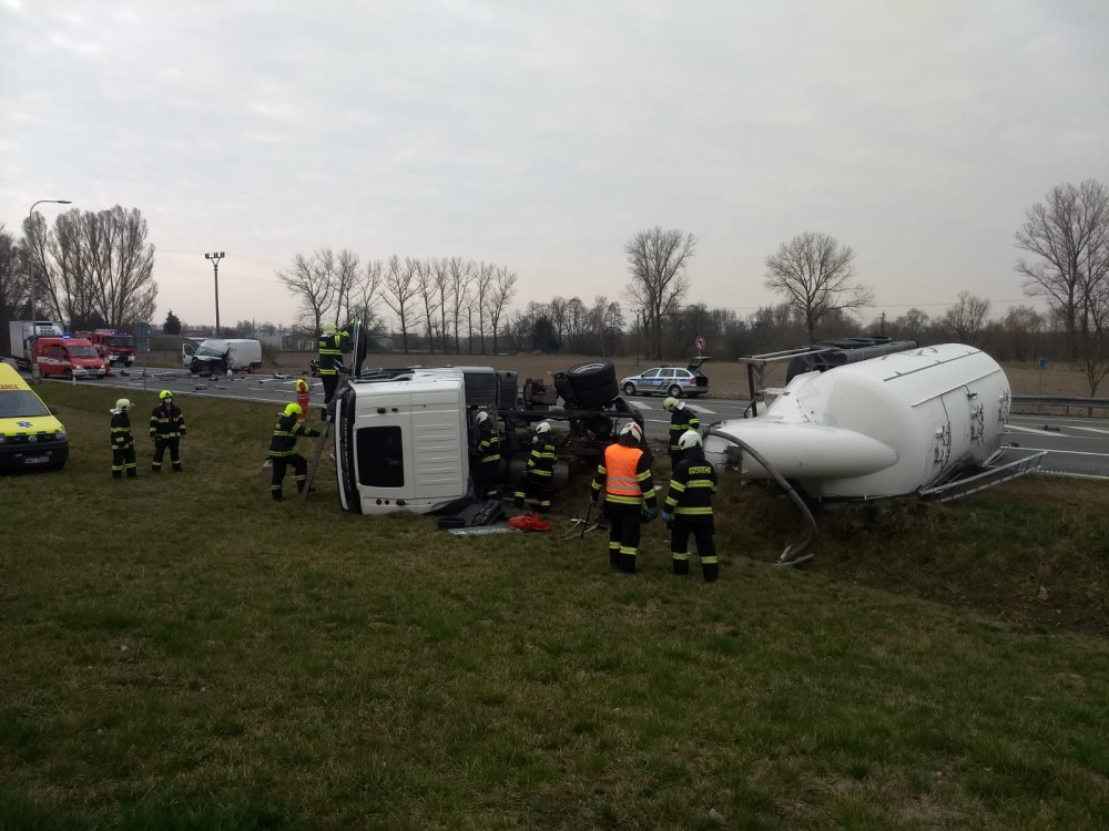 Dopravní nehody s vyproštěním v Roudnici a převrácenou cisternou u Týniště nad Orlicí
