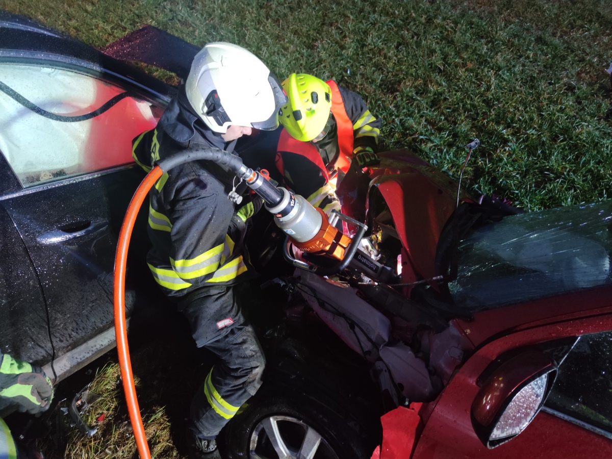 Mezi královéhradeckou částí Rusek a Skaličkou odstraňovali hasiči následky nehody dvou vozidel. Zraněné osoby měla v péči ZZS. Jedno z nabouraných aut vyprostili hasiči z příkopu, druhé vyprošťovala přivolaná služba. Jednotka se postarala o úklid vozovky. Zasahovala jednotka: HZS Hradec Králové