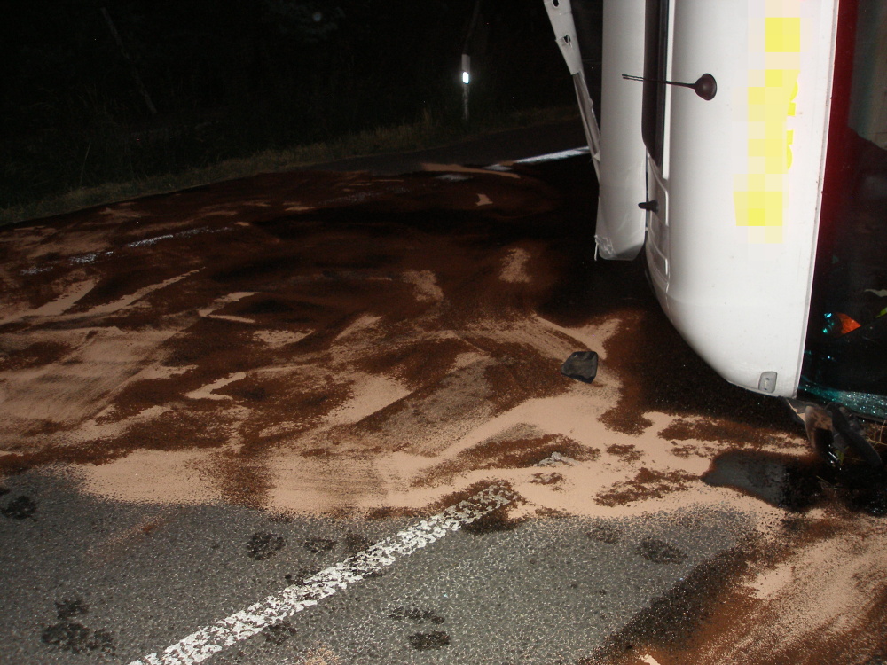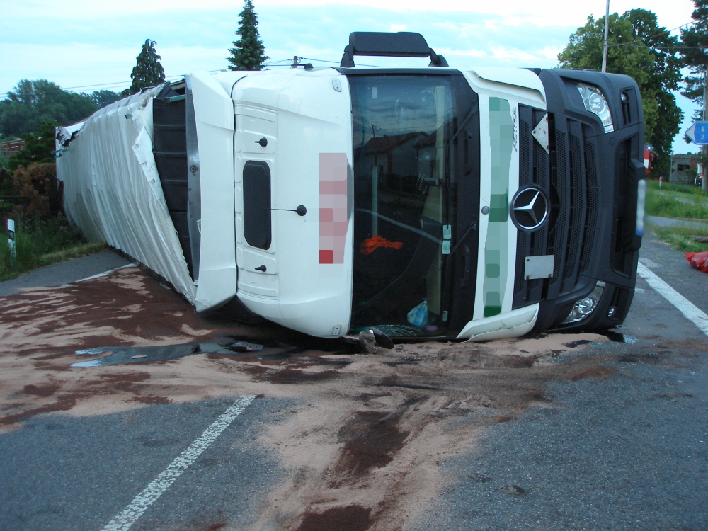 Tři jednotky hasičů vyjely dnes v ranních hodinách k nahlášené dopravní nehodě kamionu, který se převrátil na silnici č. 35 v části Lípa a zůstal ležet napříč komunikací. Z vozu uniklo asi 200 litrů nafty. Naštěstí zůstala látka na krajnici a silnici, do kanalizace nestekla. Hasiči zajistili místo události a zasypávali naftu pomocí sorpčního materiálu. K vyproštění kamionu byla povolána odborná firma, komunikace musela být uzavřena. Hasiči předali místo zásahu policistům a kolem 5. hodiny ranní se vrátili zpět na stanice.