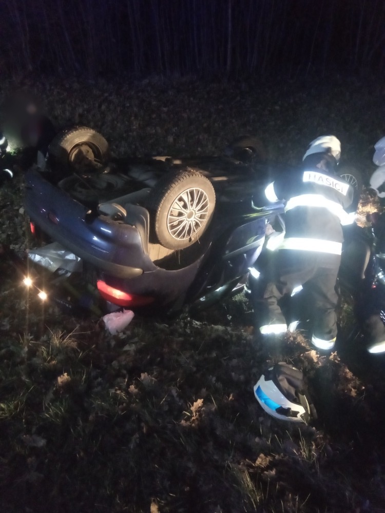 V tomto případě vyjelo osobní auto do příkopu a skončilo otočené na střeše. Profesionální rychnovští hasiči našli ve vozidle dvě osoby uvězněné v pásech, vytáhli je ven a předali do péče ZZS. Po zajištění havarovaného vozu a dokumentaci místa nehody otočila jednotka auto zpět na kola pomocí navijáku a ustavila ho mimo komunikaci pro odtahovou službu.