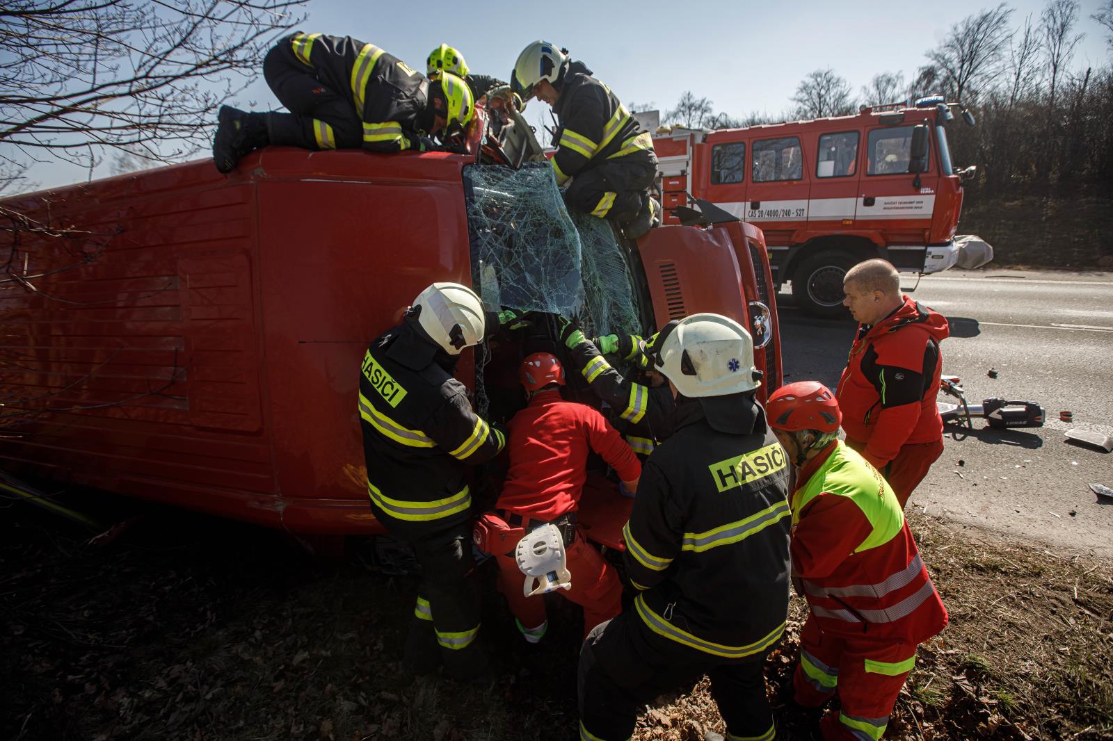 Profesionální hasiči z Jaroměře a obou královéhradeckých stanic se sjeli k dopravní nehodě osobního automobilu a dodávky. Ke střetu došlo na silnici č. 33 u Jaroměře v katastru části Semonice. V osobním vozidle zemřel bohužel na místě člověk, z převrácené dodávky vyprostili hasiči pomocí hydraulického zařízení zraněného řidiče. Ten byl v péči zdravotnické záchranné služby, vrtulník letecké záchranné služby ho transportoval do nemocnice. Hasiči zajistili místo nehody, komunikace byla po dobu policejního vyšetřování a provádění likvidačních prací uzavřena. Z dodávky musel být odčerpán zbytek pohonných hmot v objemu asi 60 litrů, velitel zásahu povolal technický automobil chemický ze stanice Náchod. Hasiči pak provedli základní úklid vozovky. Jako poslední ukončila svůj zásah jednotka HZS z Jaroměře, a to kolem 14. hodiny. Místo si převzala Policie ČR, která vyšetřuje okolnosti vzniku dopravní nehody. Komunikace byla opět zprůjezdněna až v odpoledních hodinách.