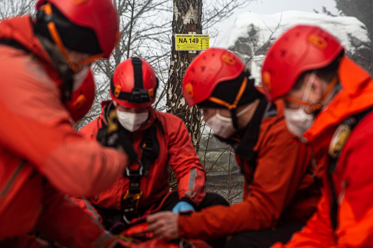 FOTO: HZS KHK - ilustrační. Fotografie v zimním terénu vznikly při společném výcviku HZS KHK a Skalní záchranné služby, kdy byla simulována záchrana osoby z těžko přístupného skalního terénu právě na základě určení polohy skrze bod záchrany.