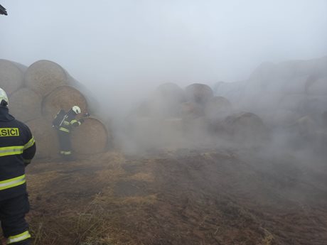 Hasiči bojovali s plameny: Požár zničil stovky balíků sena