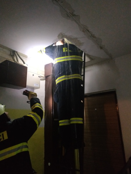 V ulici Pod Lipou pomohli hasiči s odstraněním nebezpečného stavu, kdy docházelo k zatékání vody ze střechy do bytového domu. (HZS Hořice)