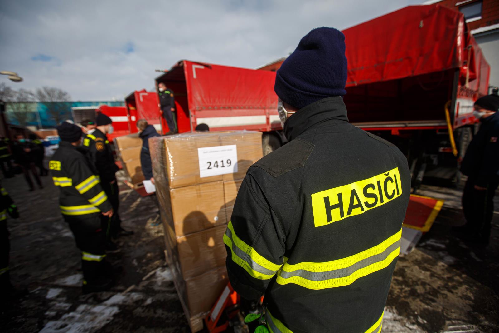 Hasiči pomáhají s rozvozem ochranných pomůcek pro obyvatele Královéhradeckého kraje