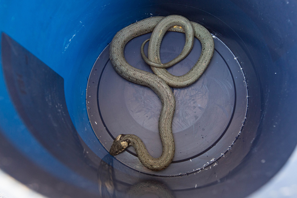 Nezvaného hosta objevila majitelka rodinného domu v obci Chlístov. Zahlédla, jak se do skuliny v cihlové zdi domu dostává asi metr dlouhý had. Vzhledem k tomu, že nebylo zřejmé, o jakého hada se jedná, a v domě bylo malé dítě, měla ze zvířete obavu a požádala o pomoc hasiče.