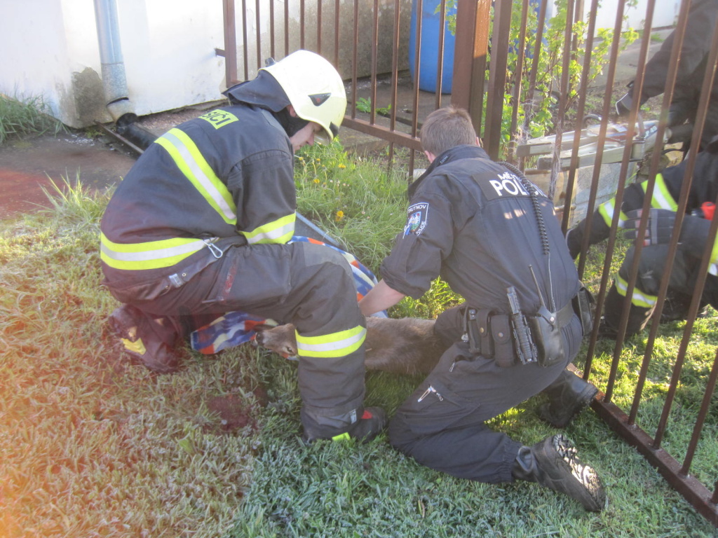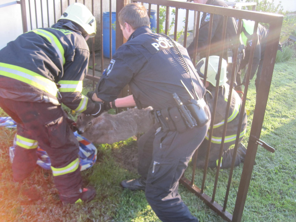 Profesionální hasiči z Trutnova ve spolupráci se strážníky městské policie vyjeli v neděli 30. dubna 2017 v 06:24 hodin k záchraně srnečka, který uvízl v oplocení zahrady v Žitné ulici v Trutnově – Poříčí. Hasiči na uvolnění plotu použili hydraulické vyprošťovací zařízení s ruční pohonnou jednotkou a srnce vysvobodili. Za použití stejného nářadí hasiči uvedli plot do původního stavu a zvěř vypustili mimo zástavbu do volné přírody.