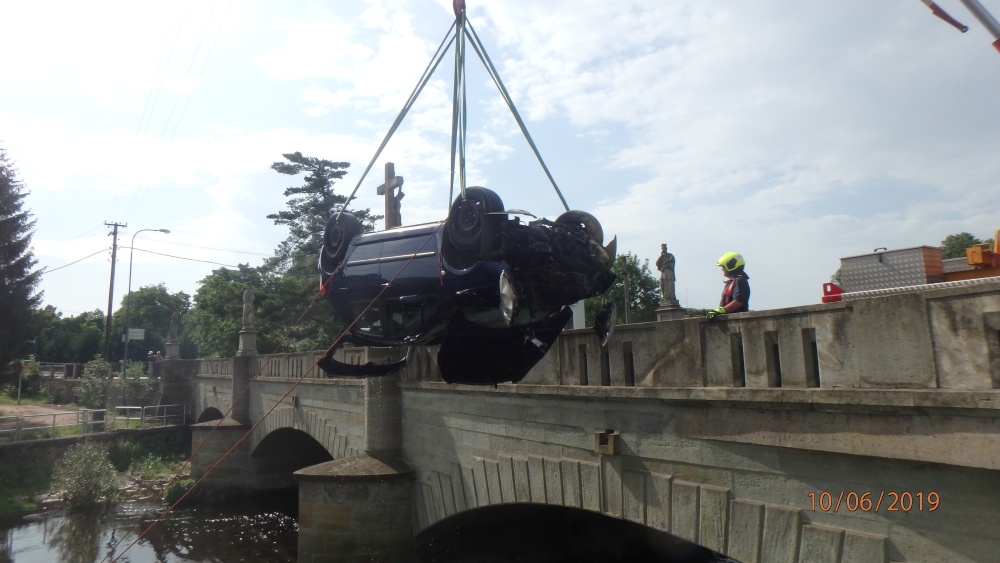 Hasiči vyprošťovali vozidlo z řeky