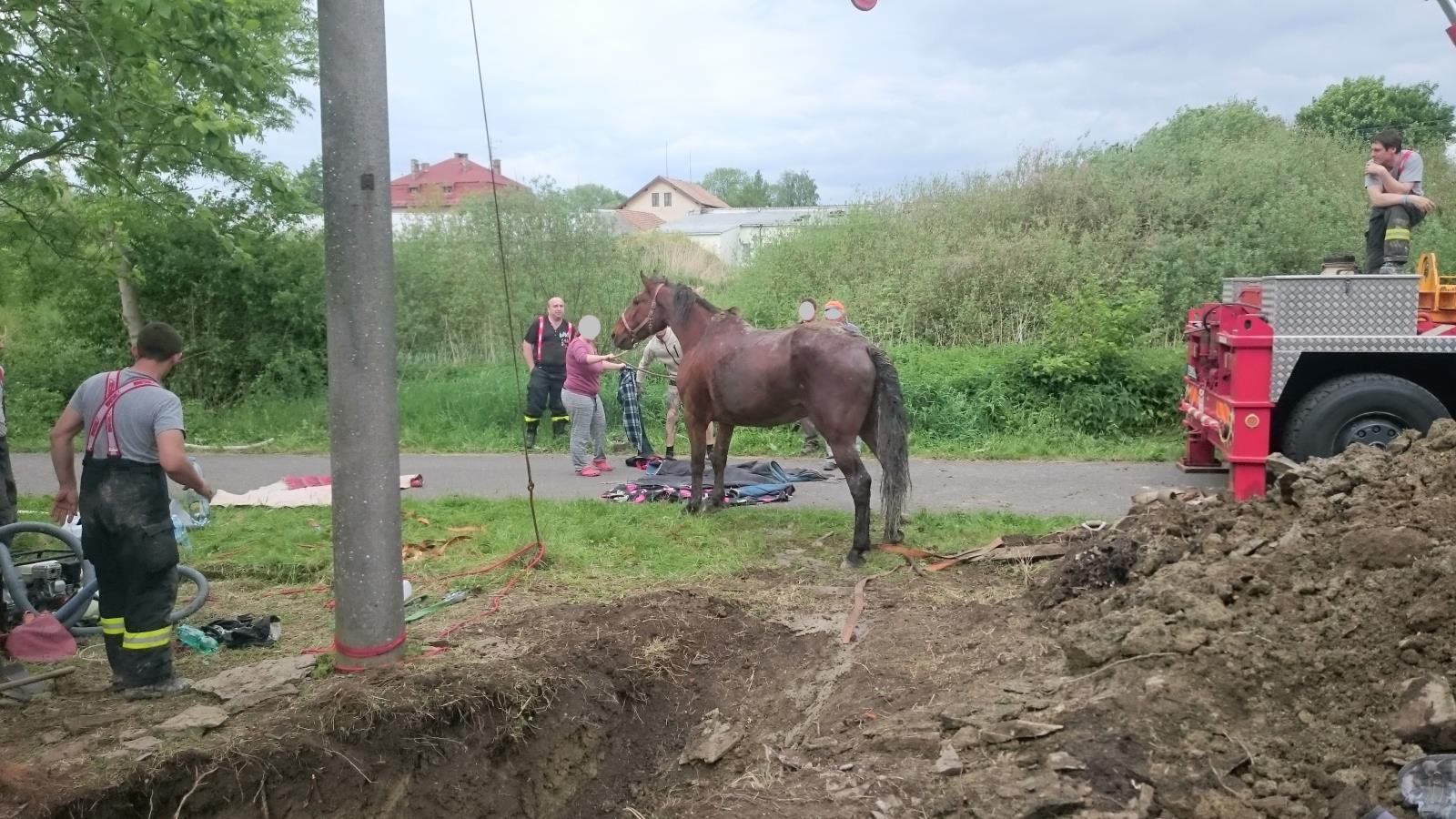 Hasiči zachránili koně spadlého do studny Náročný zásah trval několik hodin