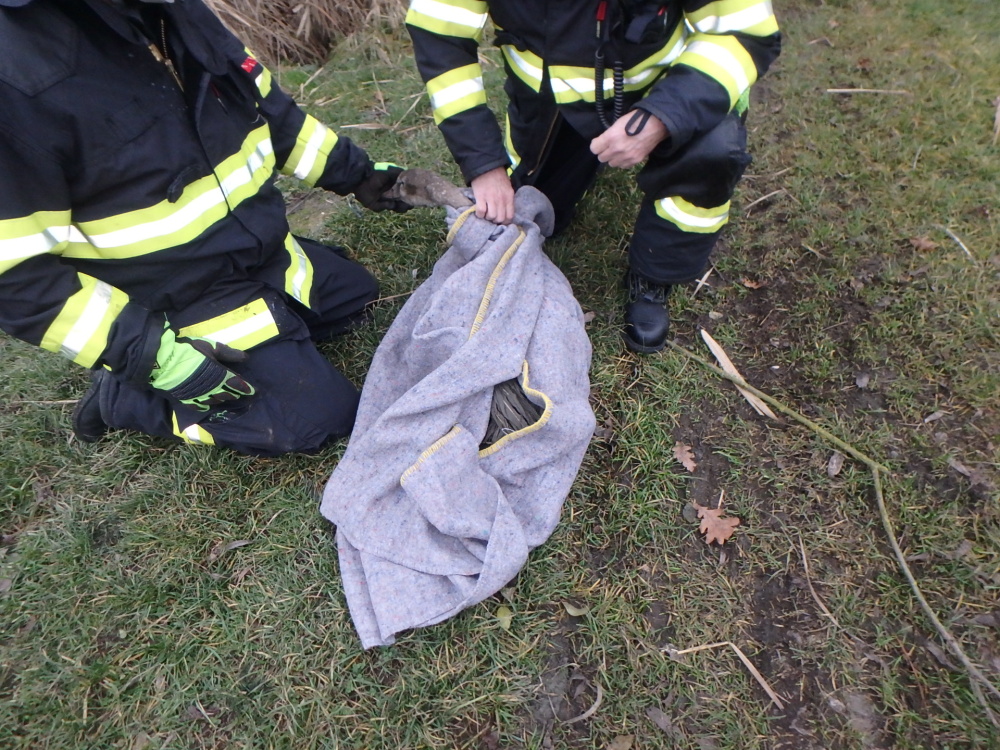 Hasiči zachránili zraněnou labuť i spadlé jehně