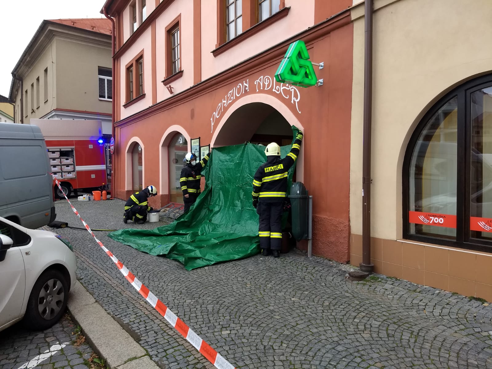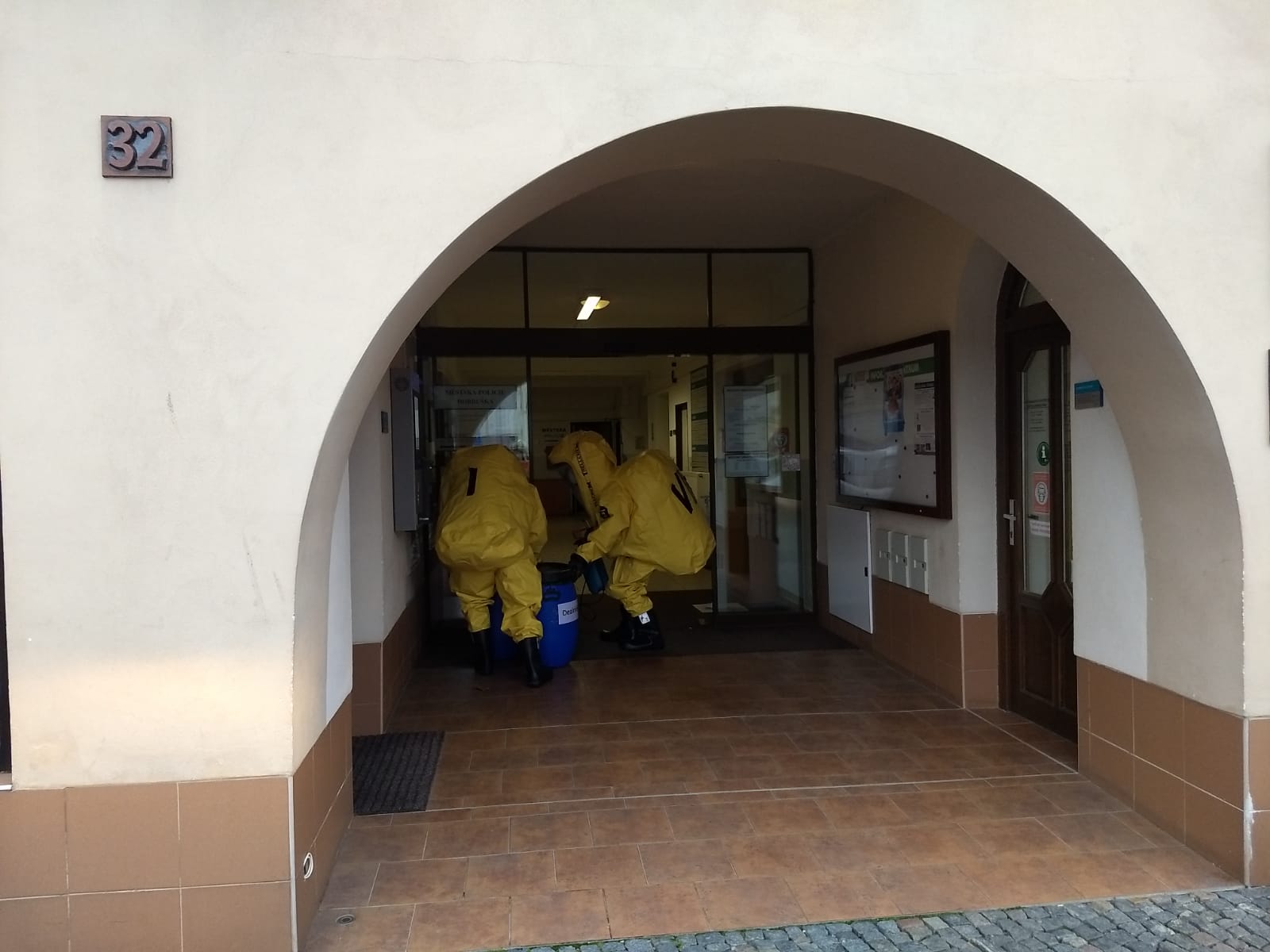 Krátce po 08:30 hod. přijalo krajské operační a informační středisko HZS Královéhradeckého kraje hlášení o nálezu neznámé látky v budově městského úřadu na nám. F. L. Věka v Dobrušce. Látka se měla nacházet v obálce. Na místo byly vyslány dvě profesionální jednotky hasičů ze stanic Dobruška a Rychnov nad Kněžnou. Hasiči vymezili prostor kolem úřadu páskou a připravili ve vytyčené zóně dekontaminační stanoviště. Dva příslušníci se následně oblékli do speciálních ochranných oděvů, obálku s látkou vyzvedli, zajistili a uložili do ochranných obalů. Takto byla připravena na transport do laboratoře Státního ústavu jaderné, chemické a biologické ochrany v Kamenné u Příbrami, kde bude podrobena analýze.