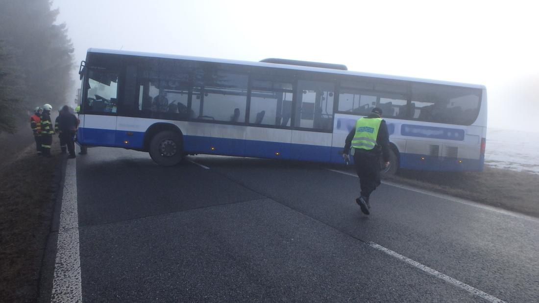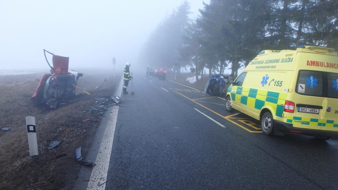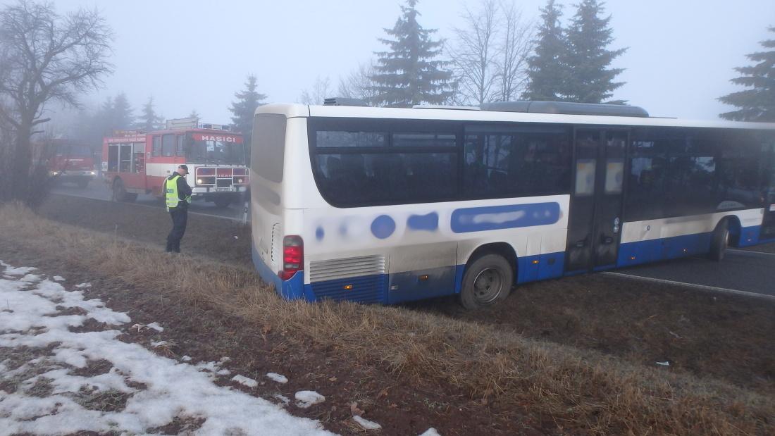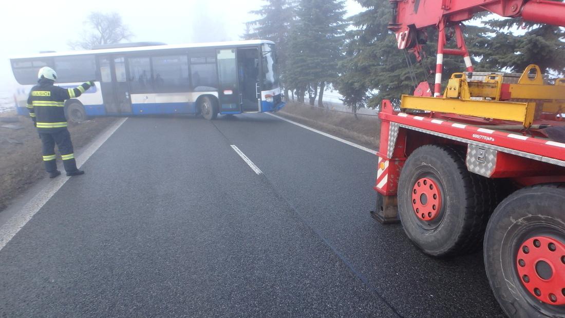 Hasiči zasahovali na jednom místě u střetu dvou osobních vozů i u zapadlého autobusu