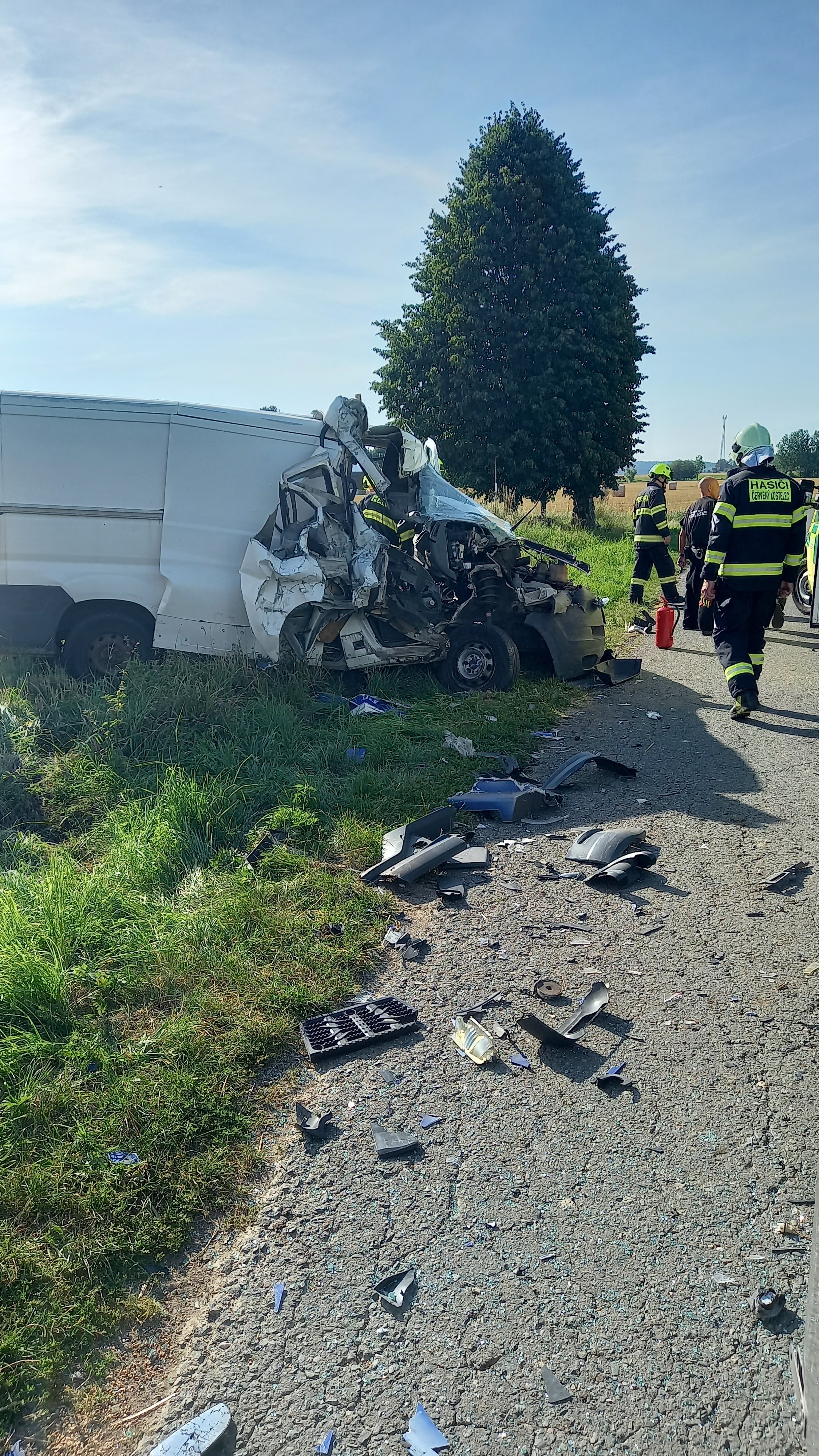 Hasiči zasahovali u dopravní nehody dodávky a nákladního vozidla