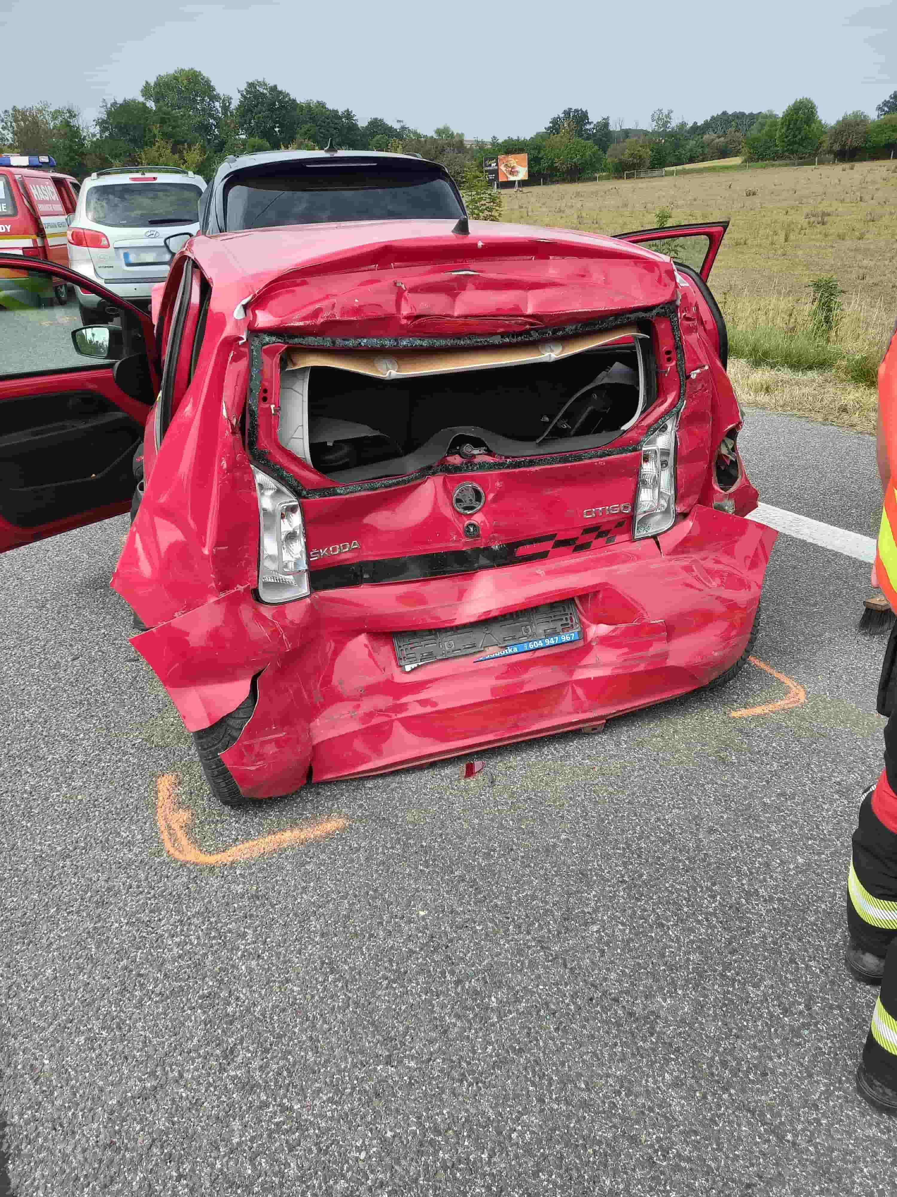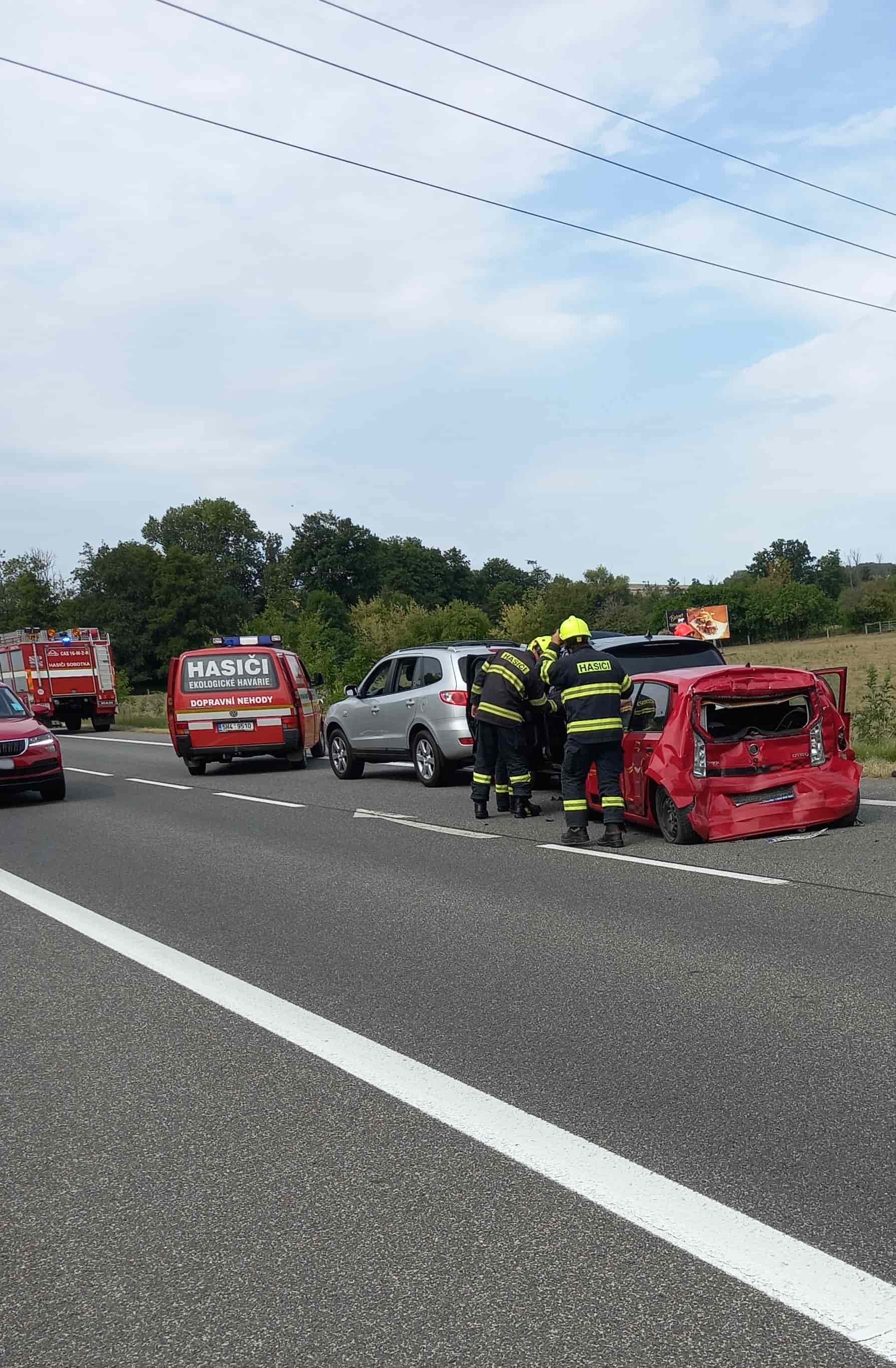 Hasiči zasahovali u hromadné nehody čtyř vozidel, jeden zraněný