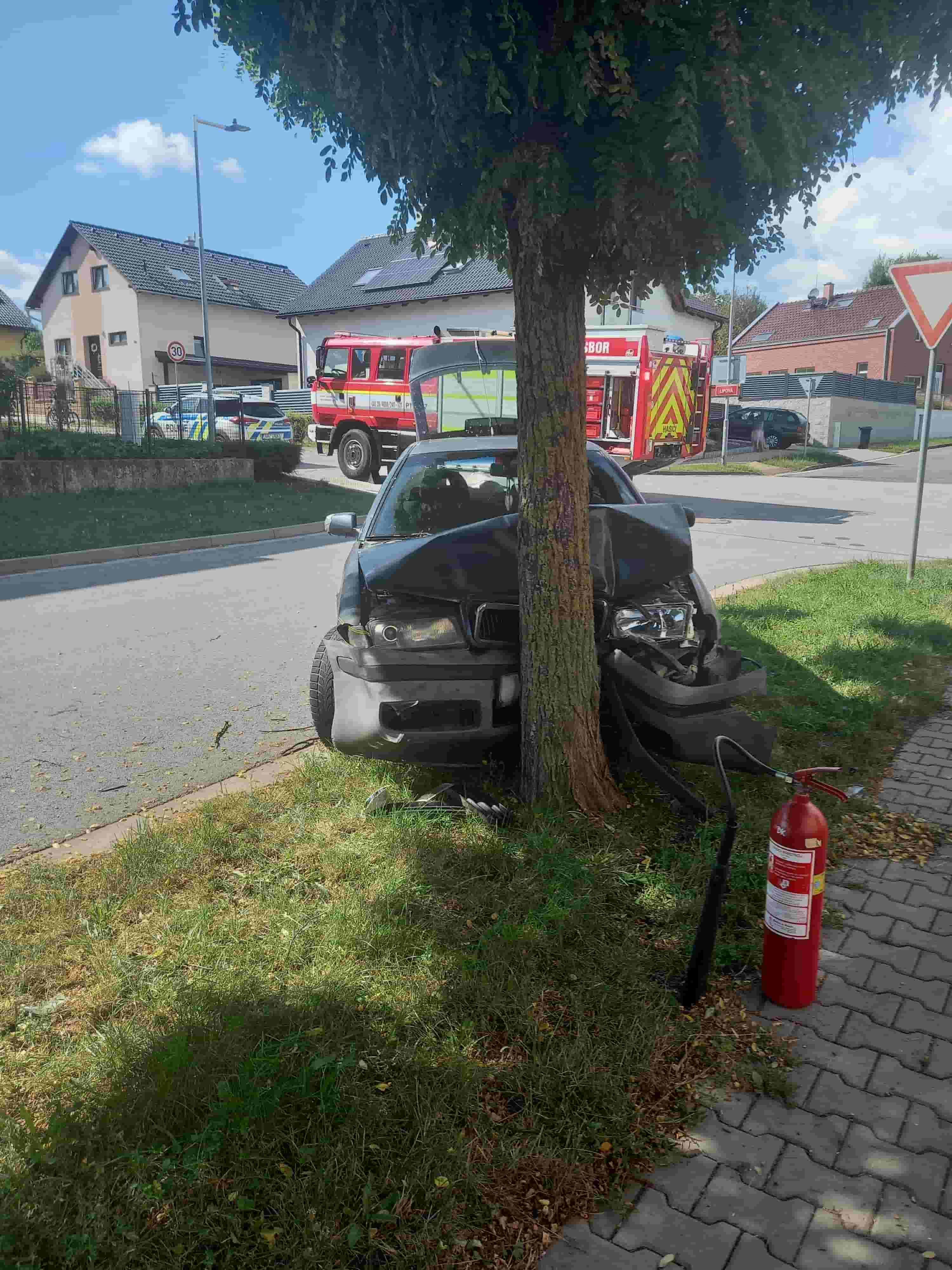Hasiči zasahovali u nehody osobního vozu po nárazu do stromu
