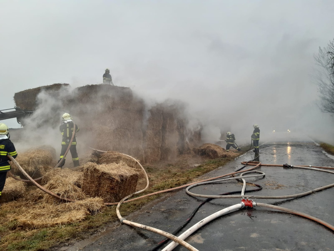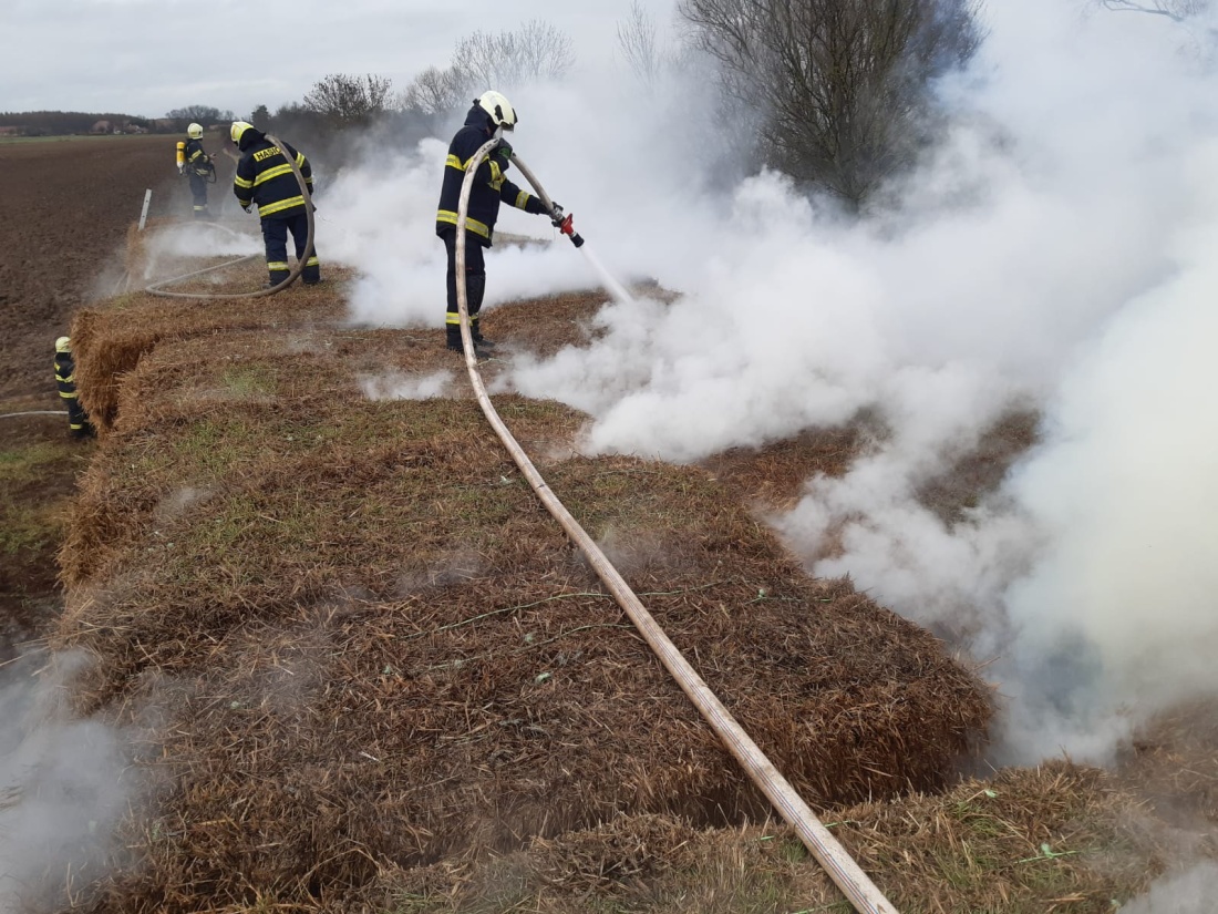 .Hasiči ze tří jednotek likvidovali požár stohu u Kopidlna