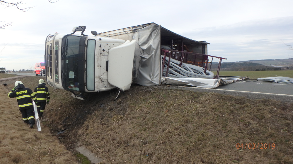 V katastru obce Lokot havaroval v pondělí, 4.března 2019, před polednem na silnici č. 321 nákladní automobil s vlekem. Vůz skončil po nehodě převrácený na bok napříč komunikací a tvořil překážku v provozu. Na místo události byly vyslány tři jednotky hasičů. Naštěstí se nehoda obešla bez zranění.