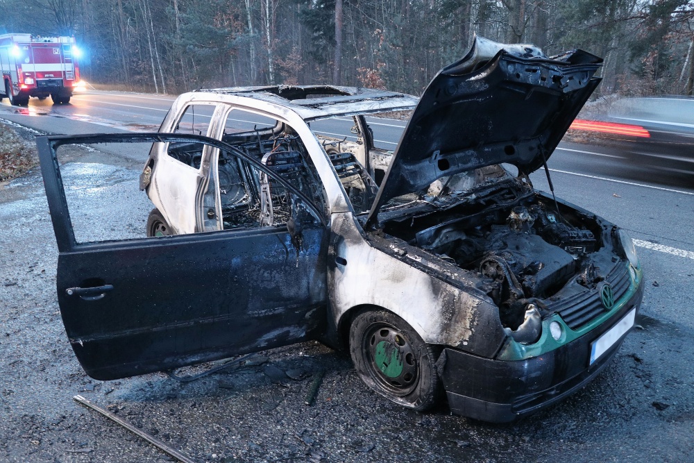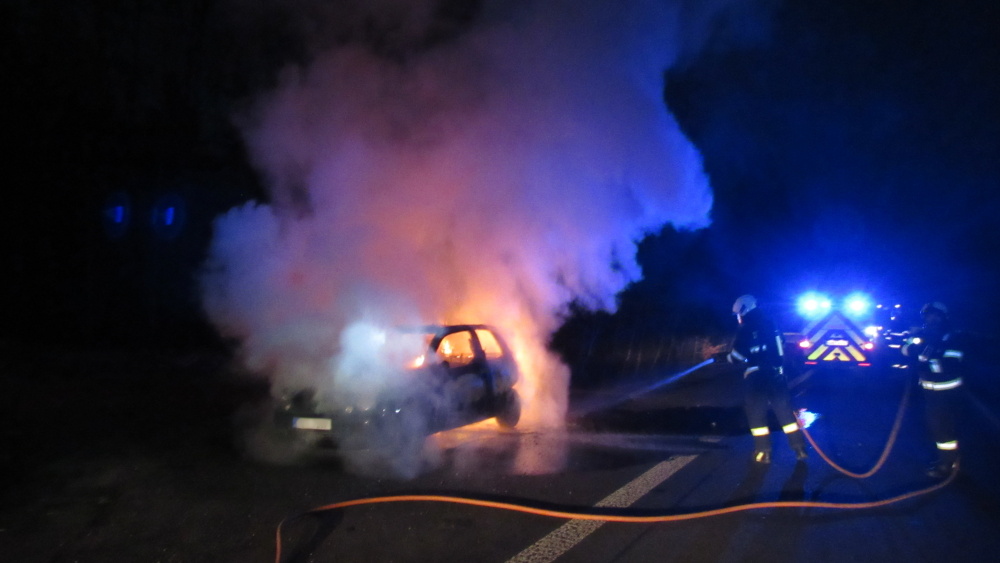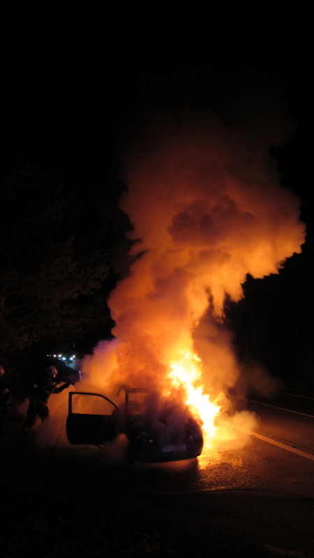 Řidič vozu zpozoroval požár včas, stihl zastavit a vozidlo opustit. Při příjezdu jednotky na místo události už byl celý automobil v plamenech, na likvidaci požáru použili hasiči vysokotlaký proud vody. Na nezbytně nutnou dobu musela být komunikace uzavřena, posléze byl provoz obnoven alespoň jedním jízdním pruhem. Vzhledem k nízké teplotě vzduchu začala voda po hašení v místě namrzat, na místo byli proto povoláni také silničáři se sypačem, aby namrzlý povrch posolili.