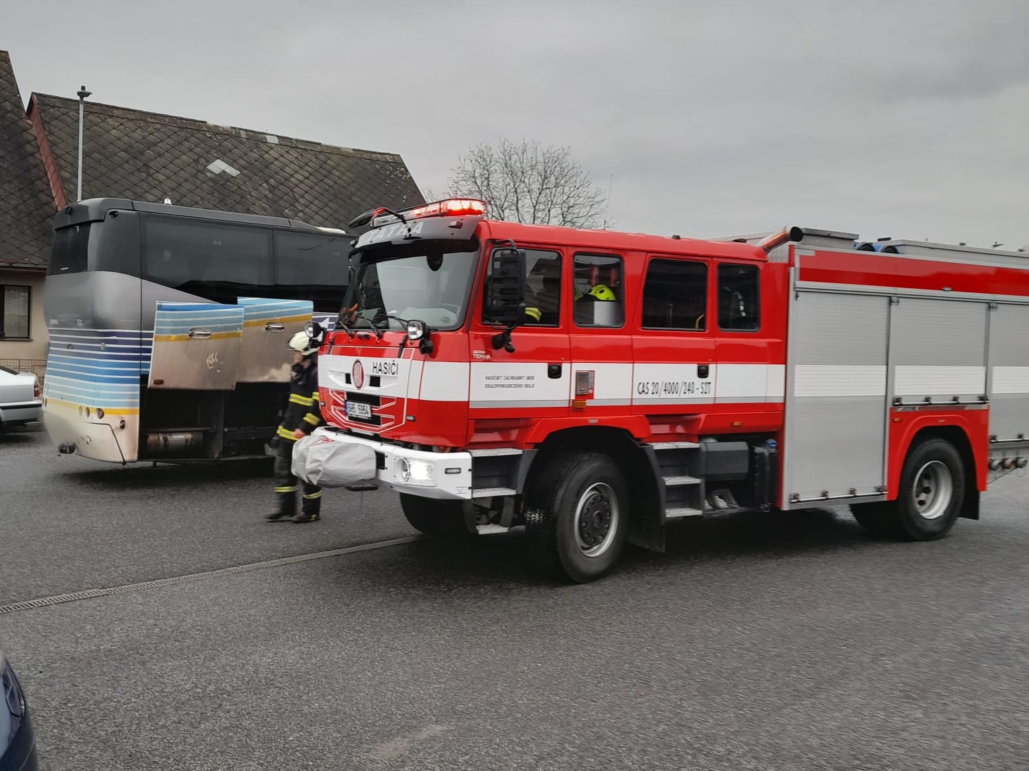 Hořící autobus zaparkoval přímo před hasičskou stanicí